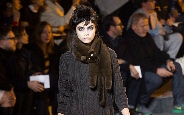 Marc Jacobs işini biliyor ve 2013 sonbahar-kış defilesiyle hepimizin ağzını açık bırakıyor. Devasa bir güneşe benzeyen küreye doğru yürüyen mankenler yoksa başka kimin aklına gelirdi? Şovun görsel kısmını kenara bırakıp biraz da kıyafetlerden bahsedelim… Boyna dolanan hayvan figürleri, kısalan şortlar ve üstler, metalik elbiseler… Sadece ceket ve kazakla karşımıza çıkan mankenlere ayak uydurabilir miyiz bilmiyoruz ama payetlerle bezeli tasarımların hepsini istiyoruz!