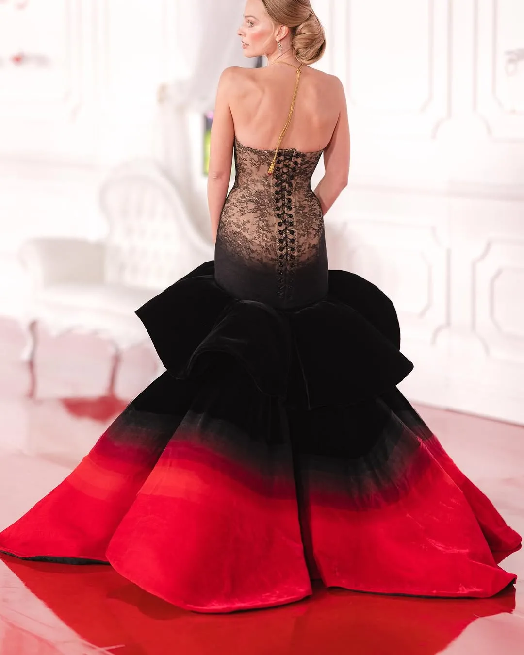 Ve Los Angeles prömiyeri… Daniel Roseberry yönetimindeki Schiaparelli, filmin ruhunu tek bir elbisede topladı. Los Angeles galası için özel olarak tasarlanan bu elbise romantizmi, tutkuyu ve dramı birbirine bağlıyor.