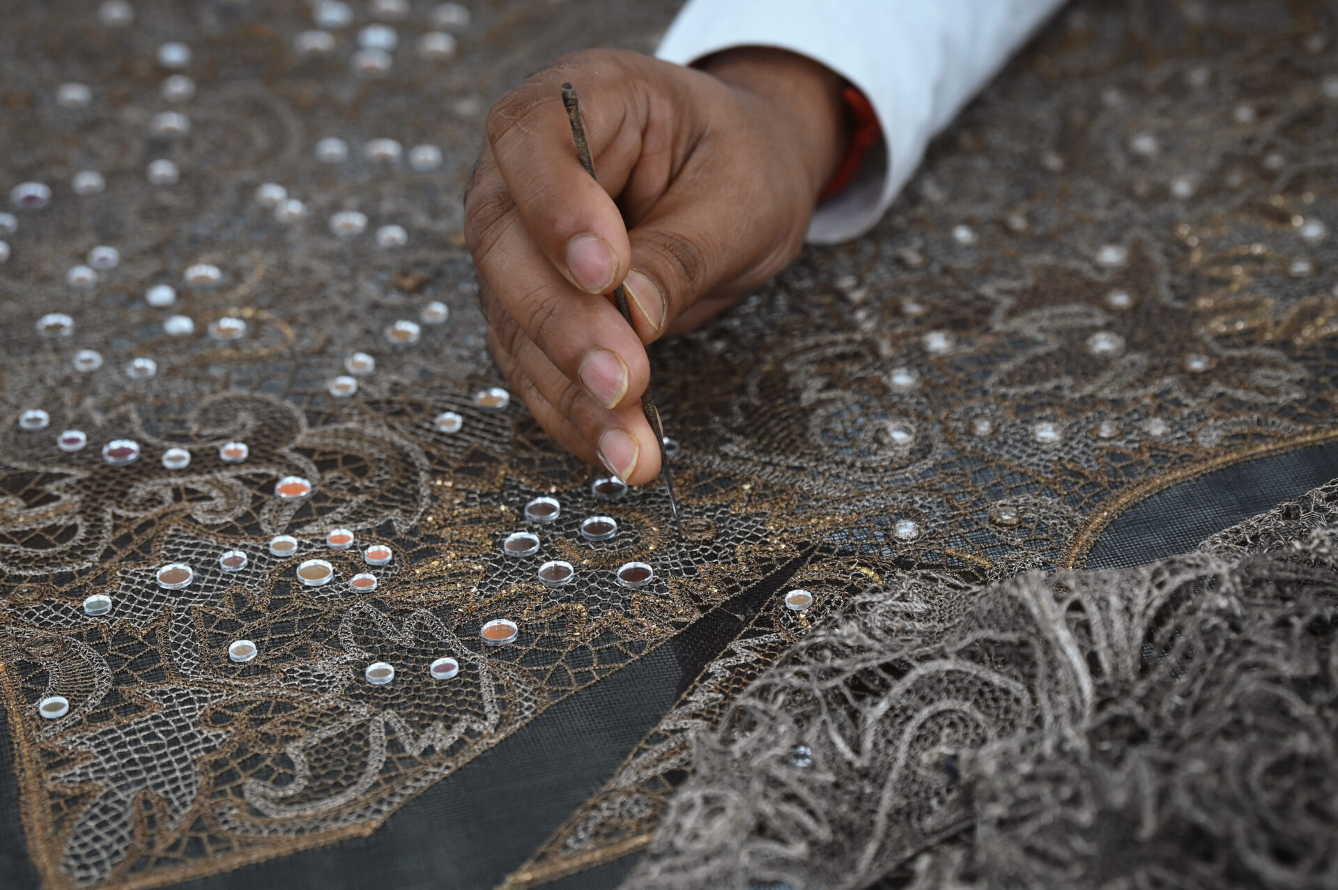 18. yüzyıldan itibaren Hindistan’da “Nizam” adı verilen soyluların giydiği kıyafetlerde kullanılan altın ve gümüş ipliklerle yapılmış işleme tekniği ise defilede dikkat çeken görünümlerin başında geliyor. El emeğiyle kumaşa işlenen Hindistan kültürüne özgü simgeler ve motifler, ülkenin kültürel zenginliğini yansıtmak konusunda oldukça etkili. Bu teknikle üretilecek desenlerin mikroskobik bir iğne ile titiz bir çalışma gerektirdiği biliniyor.