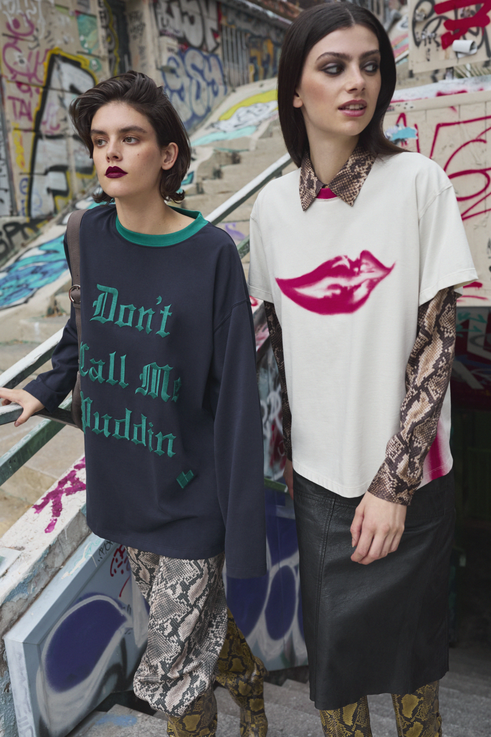 Üst giyimde sprey efekti öne çıkarken, kontrast şeritler ve gotik yazı fontları, şehrin tarzını yansıtan kazaklarda kendini gösteriyor. Şehrin dinamizmini ve karakterlerin asi ruhunu yansıtan bu detaylar, koleksiyonun ruhunu yansıtan cesur ve özgün estetiği tamamlıyor.