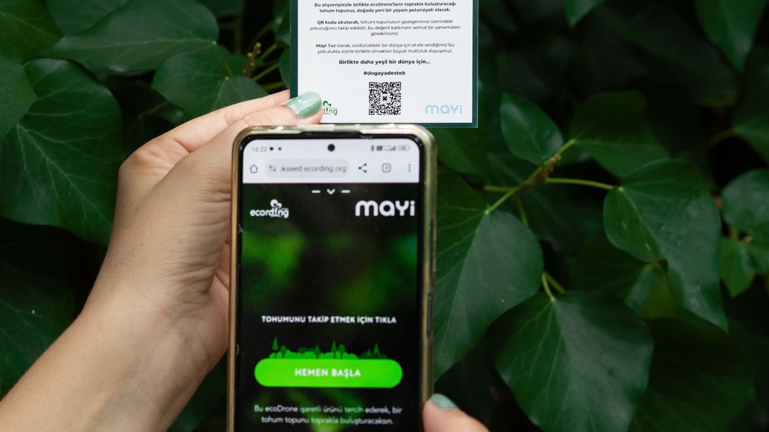 Mayi Tuz tarafından gönderilecek kartın üzerindeki QR koduyla kendi tohum toplarını seçebilecek olacak katılımcılar, doğaya sağladıkları katkının tüm süreçlerini de takip edebilecek.