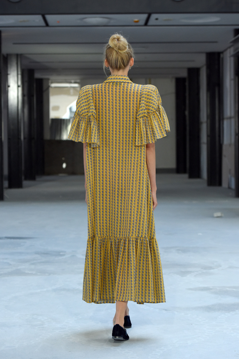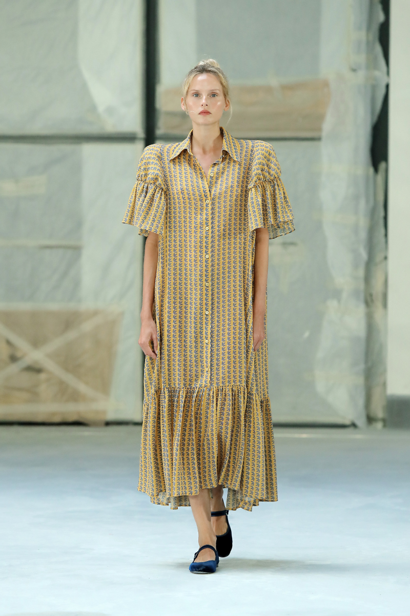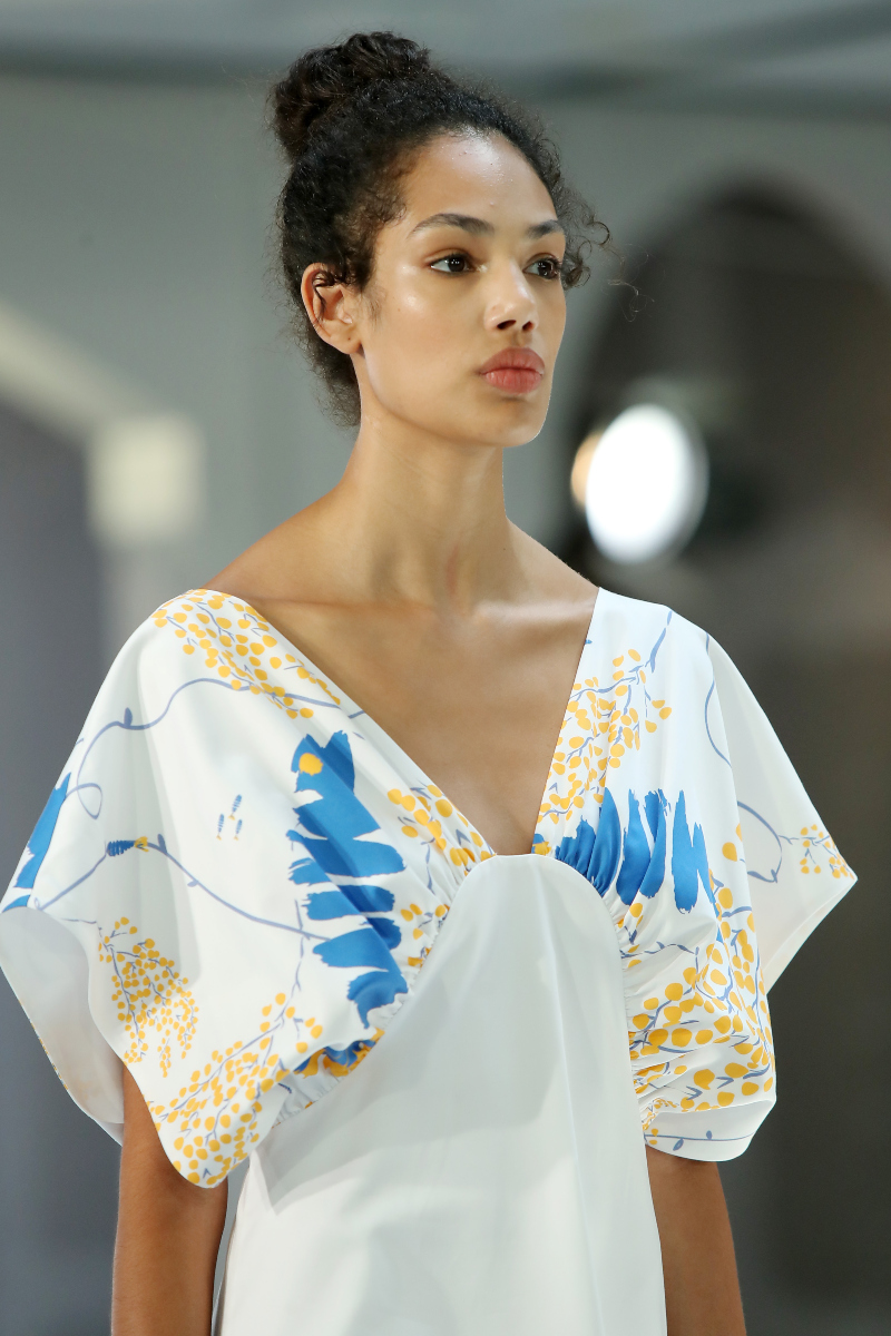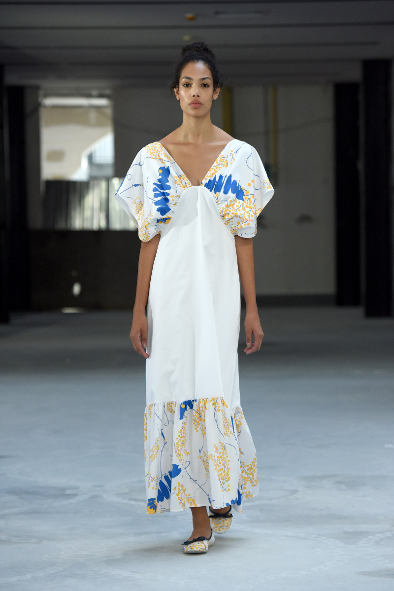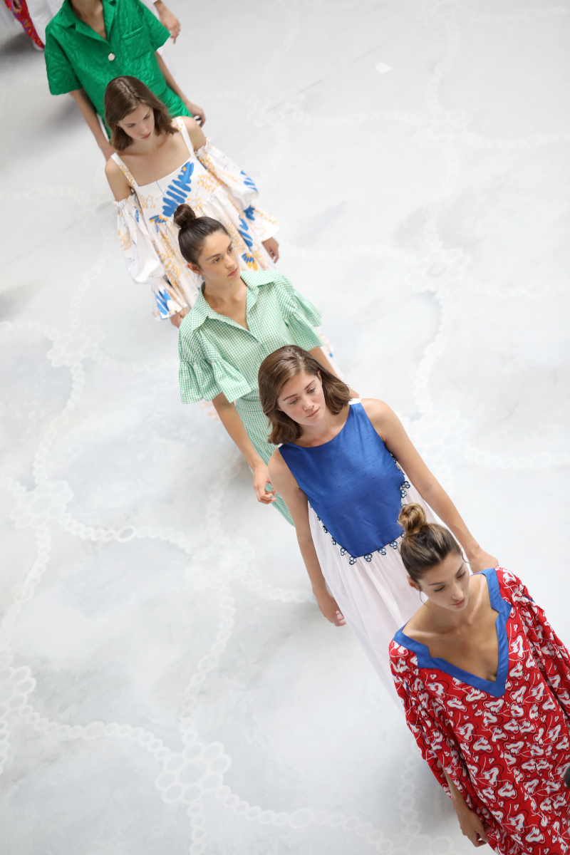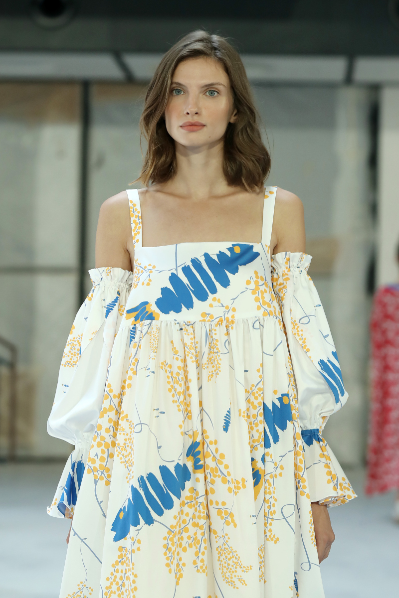 Koleksiyonda Mehtap Elaidi’nin imzası olan kup oyunları başı çekerken detaylarda balon, pli, drape ve volan detayları öne çıkıyor. Bu silüetler canlı desenlerde hayat buluyor ve bu desenlere kırmızı, yeşil, mavi ve bej tonlarından oluşan bir renk paleti eşlik ediyor. Bolca kullanılan beyaz poplin de bu canlılığa bir tezat oluşturup izleyicinin gözlerini ve içini ferahlatmayı amaçlıyor.