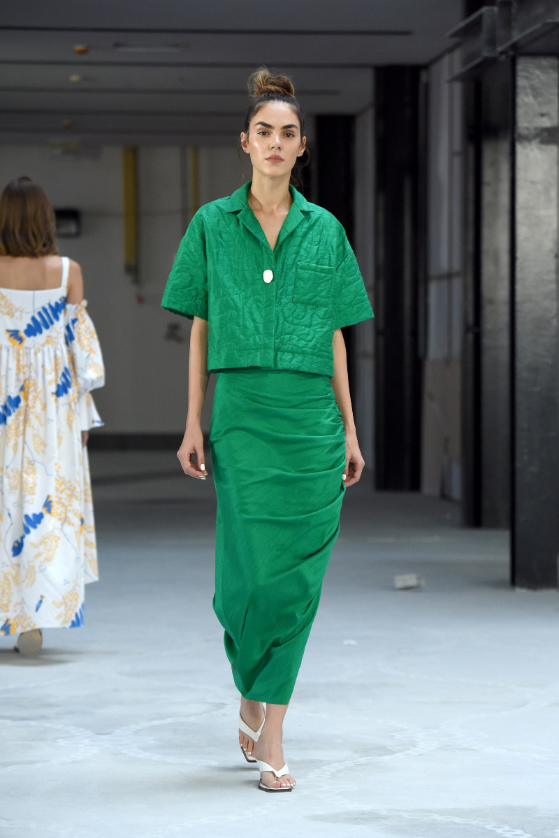 Mehtap Elaidi daha sonra dünyanın özüne döndü ve varoluşun başlangıcı olan okyanus va balıklardan esinlenerek iki özel desen yaptı, bazı parçalarda da balık desenini nakış olarak işledi. Pandemi sürecinde özüne dönerek kendini toparlayan doğamıza gönderme olarak capcanlı soyut çiçek desenleri de koleksiyona ekledi. FW2021 koleksiyon çekiminde her şeye rağmen beton aralarından fışkıran yeşilliklere gönderme yapan tasarımcı bu dönemde her şeyden çok umuda ihtiyacımız olduğu için bu görseli de SS21 koleksiyonunda bir desene de taşıdı. Koleksiyondaki tüm desenler doğa özüne dönmeye devam edebilsin diye organik kotonlara, doğa dostu Ecovero kumaşına veya Tencel’e basıldılar. Bu çevreçi yaklaşımdan hareketle ekip ellerinde kalmış olan eski sezon kumaşlarını da koleksiyona dahil ederek koleksiyonun %80’ini sürdürülebilir kumaşlardan oluşturdu.