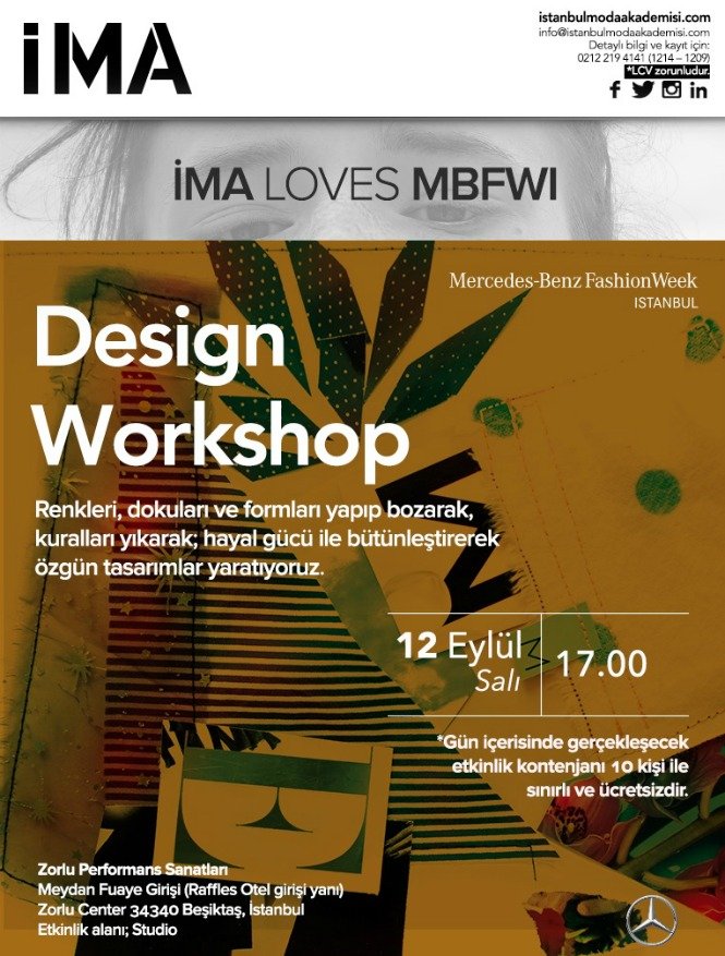 Bu doğrultuda 12 Eylül Salı günü “Design Workshop by IMA”, 13 Eylül Çarşamba günü “Let’s Talk Styling by IMA” ve 14 Eylül Perşembe günü “First Date: Fashion Photography for IMA” MBFWI’nin Studio alanında gerçekleşecek. Ayrıntılı bilgi için İstanbul Moda Akademisi ile iletişime geçebilirsiniz.