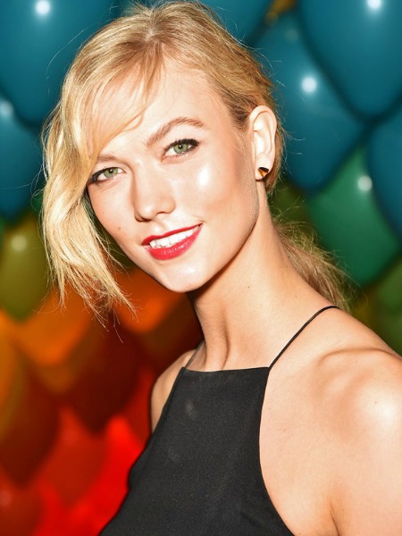 Karlie Kloss, ensesinde topladığı at kuyruğu ve yandan bıraktığı bir tutam saçıyla favori parti saçlarımızdan birine imza atıyor.