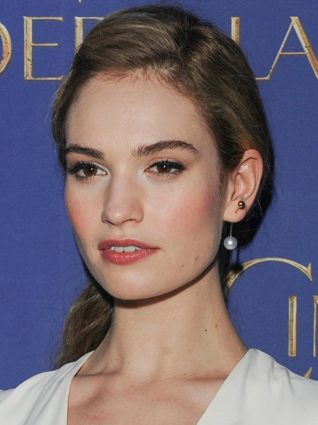 Cinderella filminin yıldızı Lily James, bir yanını daha gevşek bıraktığı at kuyruğuyla asil bir görünüme bürünmüş.