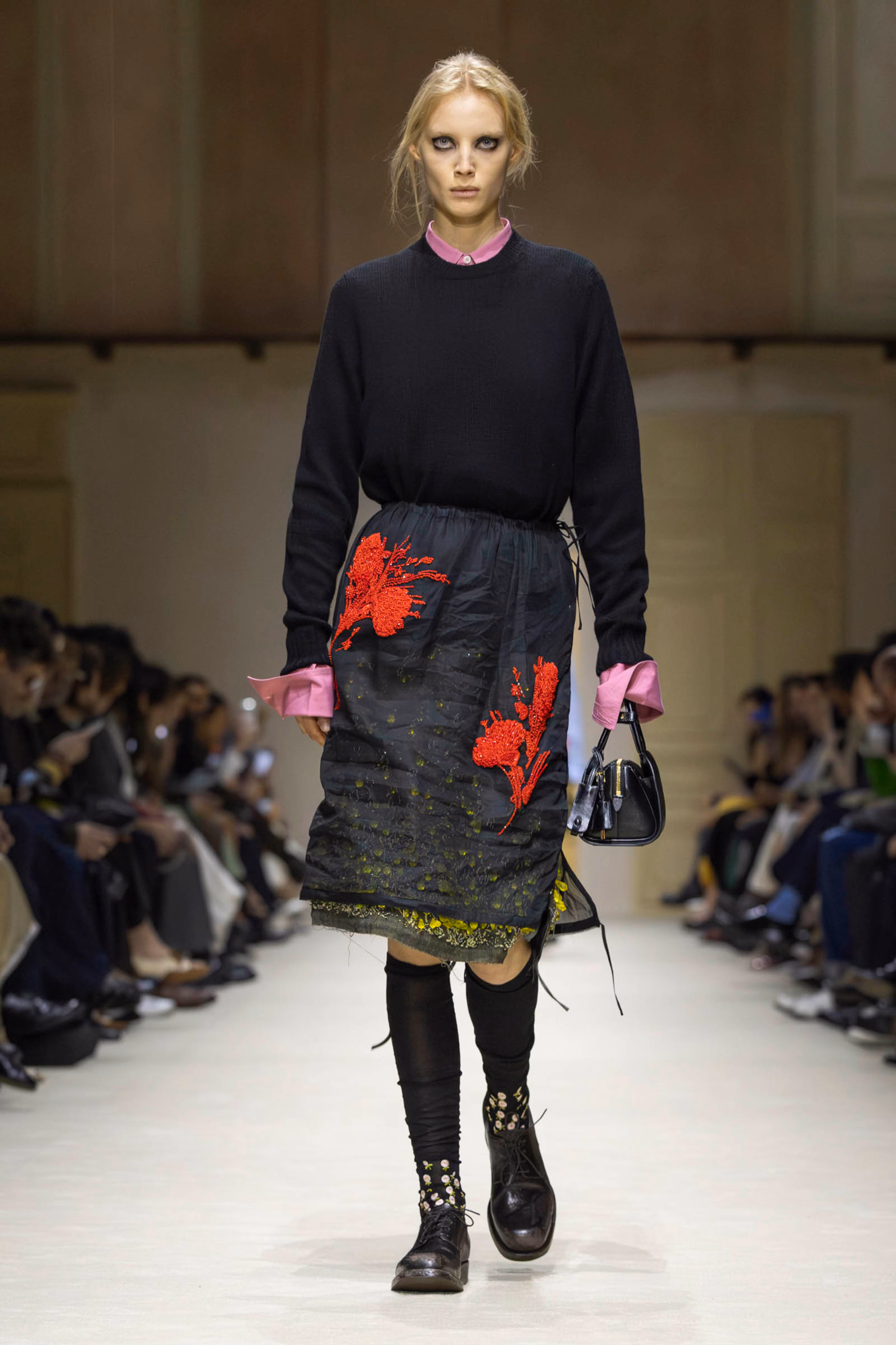 Miuccia Prada ve Raf Simons bu sezon zekice bir sahne oyunu kurdu: 15 model, 60 görünüm. Aynı modeller dört kez podyuma çıktı; her dönüşte bir katman eksildi.