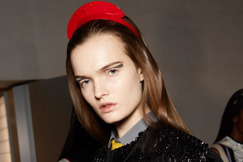 Uzun süredir ortak çalışan Prada ve Pat McGrath, bir kez daha bu iş birliğinin gücünü gösterdi. Modellerin göz kapaklarındaki cesur göz farı ve kırmızı saç bantları oldukça etkileyici.