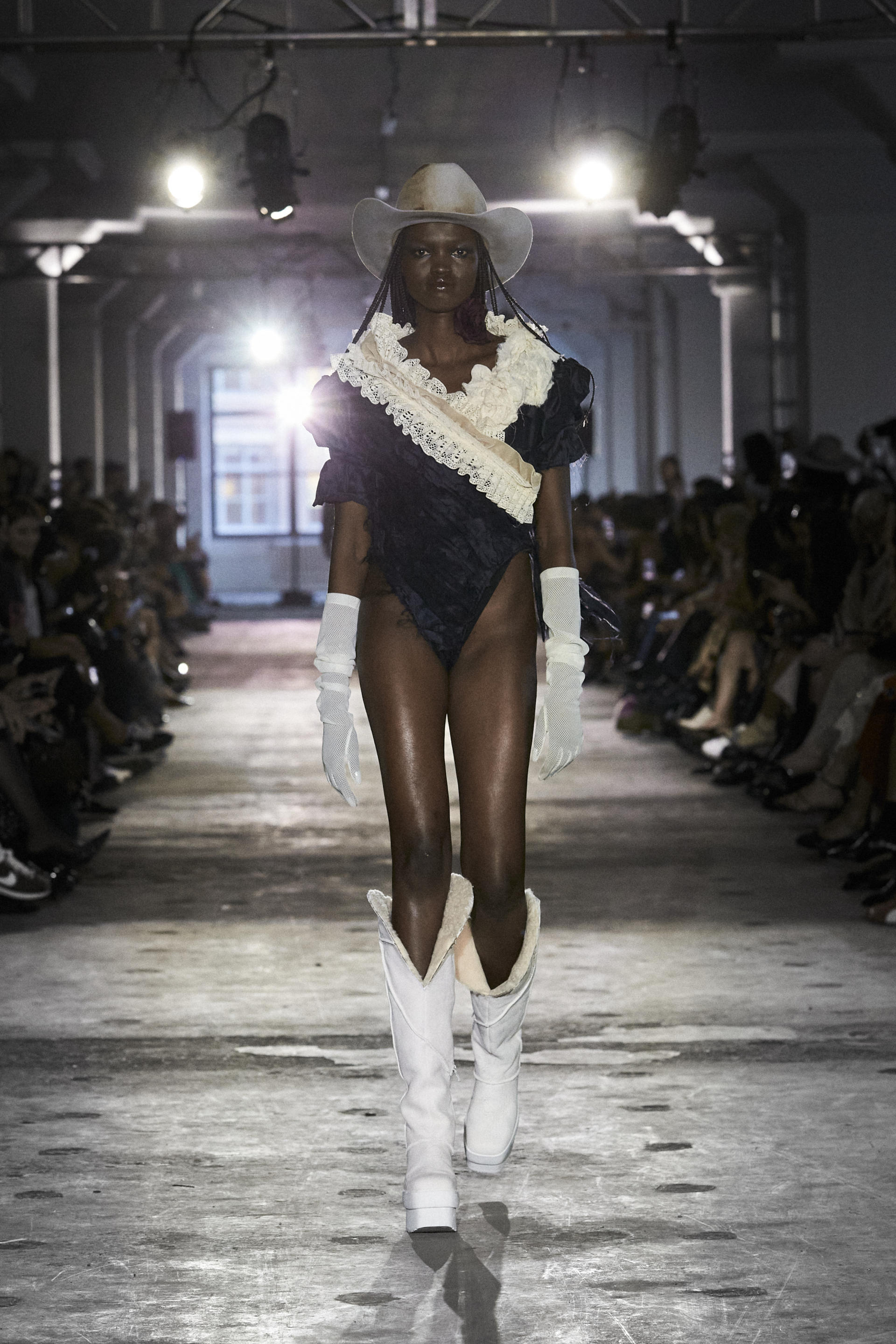 Tasarımcının şimdiye kadarki en büyük gösterisi olan La Pucelle’de, Reimagined Sonbahar/Kış 2024 modeli, tüm podyum kombinleriyle sergilenmişti. Velez, kültürel kimliğimizi tanımlayan alegorik kadın sembolleri aracılığıyla Amerikan özleminin bir portresini yaratıyor. Modern kadın hakkında karmaşık hikâye anlatımı için modayı bir araç olarak kullanan La Pucelle, markanın gölge kadını araştırmasına devam ediyor: Her ne pahasına olursa olsun özlemleri veya sıra dışı davranışları için özür dilemeden kendi özerkliklerinden zevk alan, detaycı ve çok boyutlu kadın figürleri. Velez’in son koleksiyonu, yıkıcı ve kadın ikonları için, nazik toplumun hassasiyetlerine uyma konusundaki isteksizliği sayesinde özgün bir punk perspektifi sunuyor.