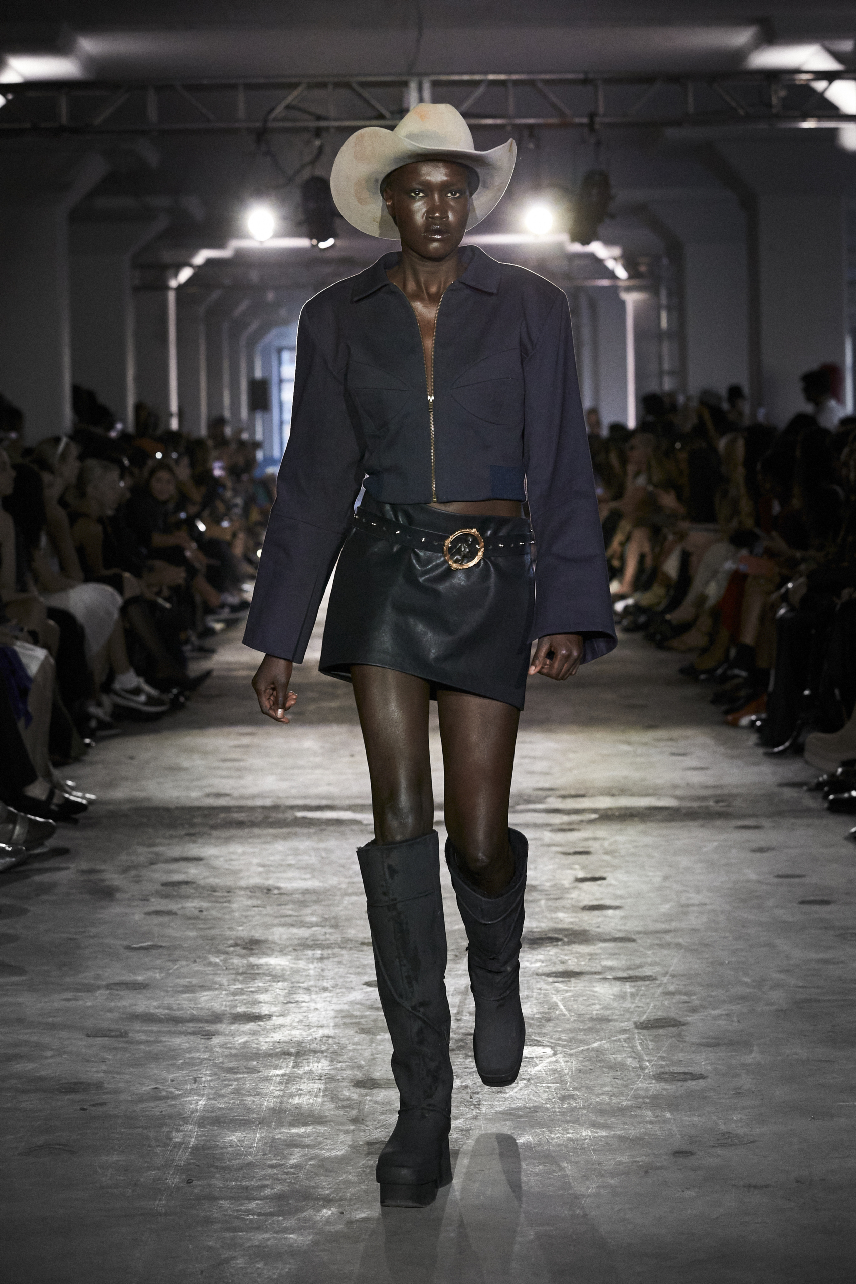 Elena Velez defilesinde, şarkıcı-söz yazarı ve dansçı Tinashe’nin de aralarında bulunduğu modeller podyuma çıktı. Ön sırada ise Ziwe Fumudoh vardı.