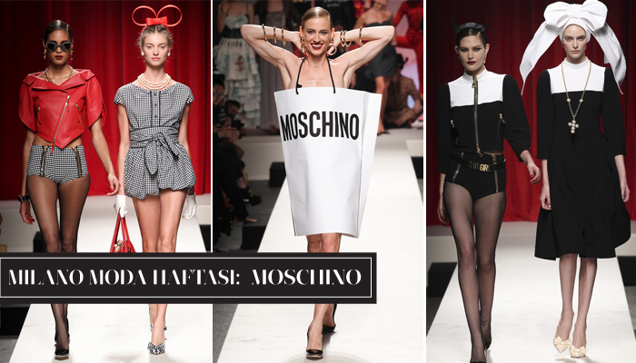 2014 İlkbahar – Yaz sezonu için sadece ‘moda kurbanlarına özel’ bir koleksiyon hazırlayan Moschino’nun izinden gidip biz de sınırları zorlamak istiyoruz. Çocukluğunuzdan kalma peluş ayılardan yaptığınız bir şapkayı, devasa bir poşeti veya tavşan kulaklarını gardırobunuza eklemeyi düşünür müydünüz? Muhtemelen hayır, ama biz yine de Rosella Jardini’nin ironik moda anlayışı karşısında saygıyla eğiliyoruz!