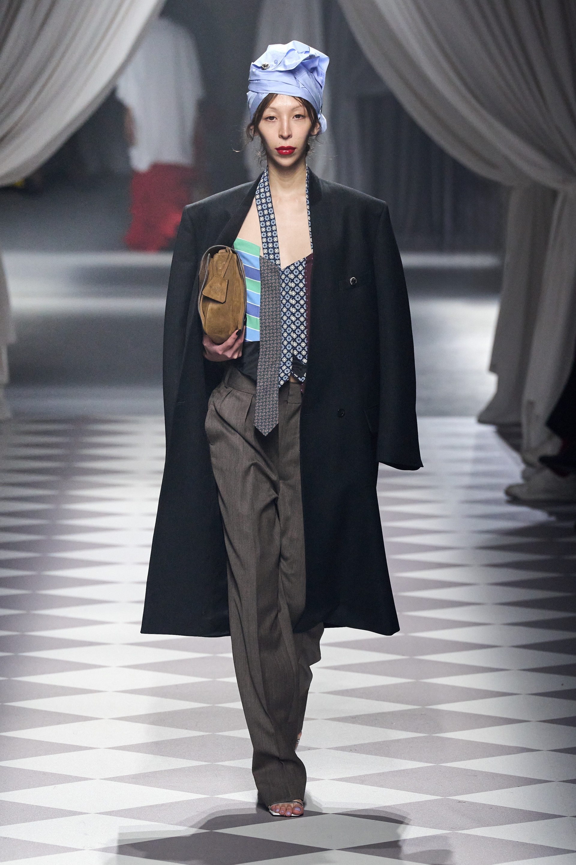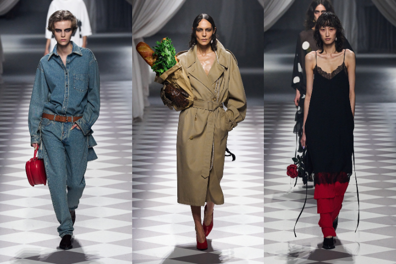 Modada “cüret” kavramına yeni bir bakış açısı getiren Moschino, klasik İtalyan havasını podyumlarda estirmeye devam ediyor. Milano defilesinde ellerinde kese kağıdı, çiçek ve baget ekmek taşıyan mankenleriyle günlük hayatı oldukça sofistike bir şekilde modayla birleştirerek hareketli ve canlı bir tema sunan marka, 2024 Sonbahar/Kış koleksiyonunu sıradanlığa vurulmuş renkli bir darbe olarak nitelendirebilir. Moschino, bu gösterisiyle monotonluğu parçalıyor ve rutinlerimizde de klaslığı ve zarifliği kolayca yakalayabileceğimizin garantisini veriyor.