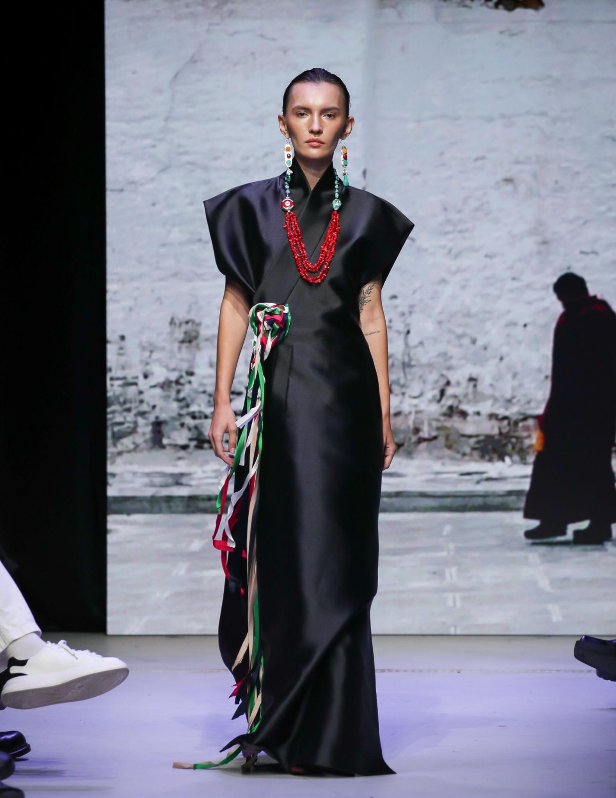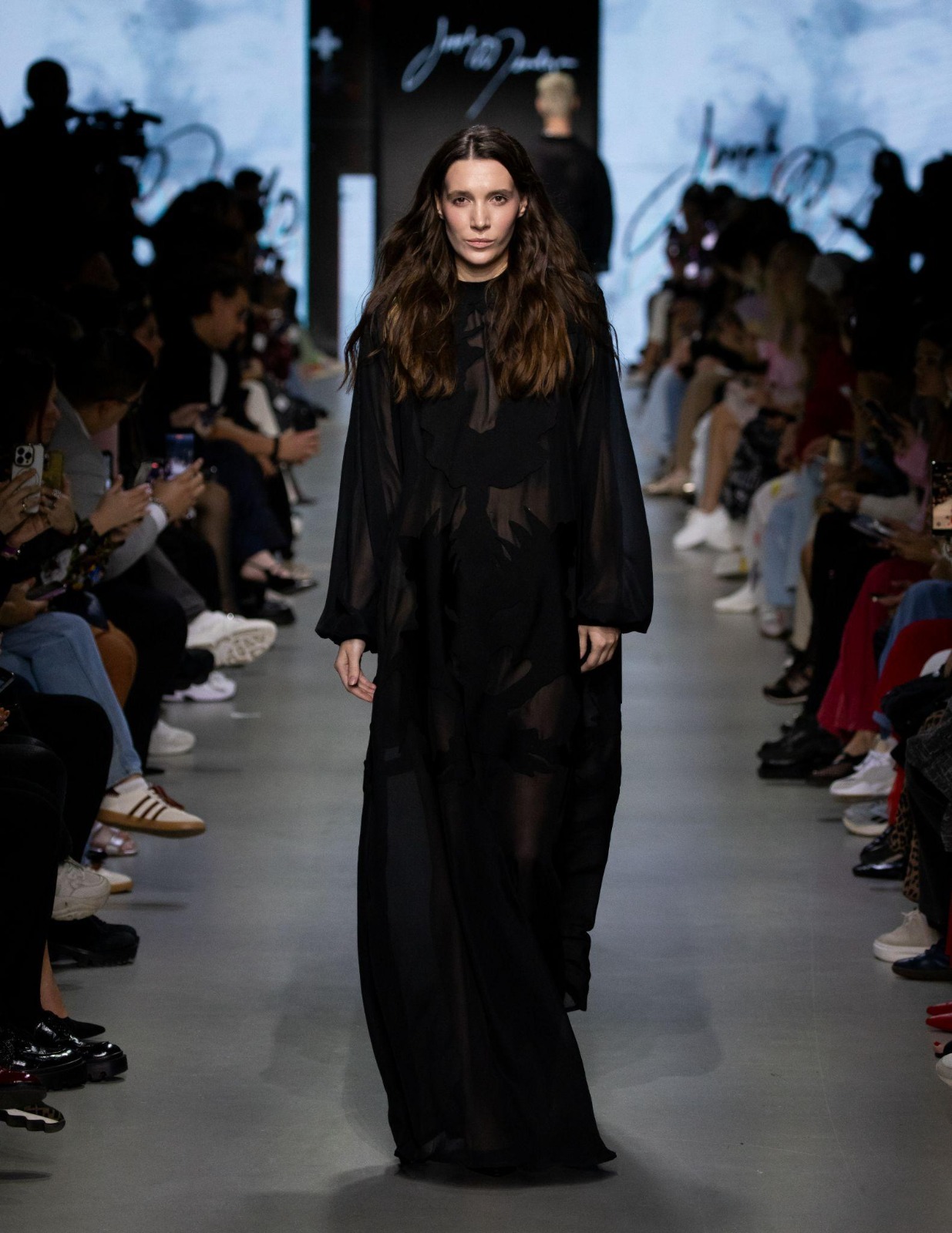 Nikaragua merkezli Joseph Mendoza, Moskova Moda Haftası’nda çarpıcı bir koleksiyon tanıttı. Bu koleksiyon Mocuana adını taşıyan ve Nikaragua folkloründe yer alan aynı isimli efsanevi kadın figüründen ilham alıyor. Koleksiyon birkaç bölüme ayrılıyor ve bunlardan birinde, öne çıkan detaylarıyla vurgulanan zarif elbiseler dikkat çekiyor. İlk görünümde, kusursuz denizanası silüetine sahip bir elbise öne çıkıyor.