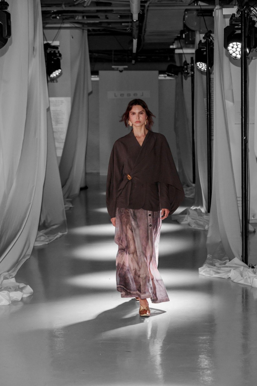 Li Lab’ın koleksiyonu, derin bir iç dünyası olan, sessizliği güç ve öz farkındalık biçimi olarak benimseyen bir kadının imajından ilham alıyor. Ortaya çıkan silüetler ölçülü ama bilinçli bir şekilde çarpıcı tasarlanarak zarafet ile kavramsal bir dokunuş arasındaki dengeyi ustalıkla kuruyor. Yere kadar uzanan elbiseler baştan çıkarıcı kıvrımları vurgulasa da odak yalnızca oranlarda değil, yenilikçi tasarım detaylarında yatıyor. Koleksiyonun en dikkat çekici görünümü ise üst yapısı farklı olan bir elbise. Tasarımda birbirine dolanmış iki kumaş boynu sarıyor ve bir kapüşona dönüşerek merakı mimari bir ilgiyle harmanlıyor. Dikkat çeken bir diğer look ise sofistike bir hava katan şarap rengi tonlarında bir elbise. Dramatik derin yırtmaçlar, dekoratif drapeler ve dekonstrüktif bir pelerin, halihazırda zarif olan silüete cesur, viral olmaya hazır bir etki ekleyerek onu unutulmaz bir ifadeye dönüştürüyor.