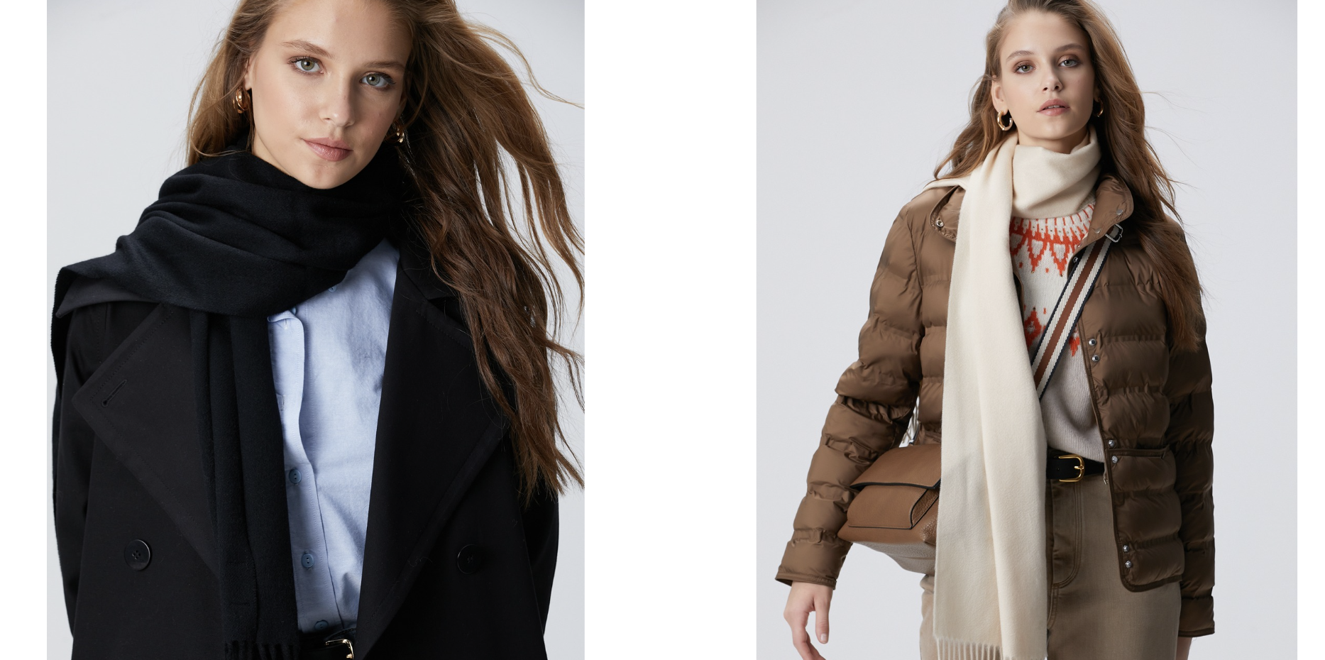 Kadın koleksiyonunda öne çıkan kaşmir parçalar; akıcı formları, dokunsal zenginliği ve zamansız renk paletiyle her stile uyum sağlıyor. Bej, gri ve toprak tonlarının yanı sıra sezonun derin lacivert ve sıcak kahve tonları, koleksiyona sofistike bir derinlik katıyor. Minimalist tasarımlara eşlik eden ince detaylar, yumuşak dokularla birleşerek hem şehir hayatının dinamizmine hem de dingin anlara eşlik edecek zamansız bir şıklık sunuyor.