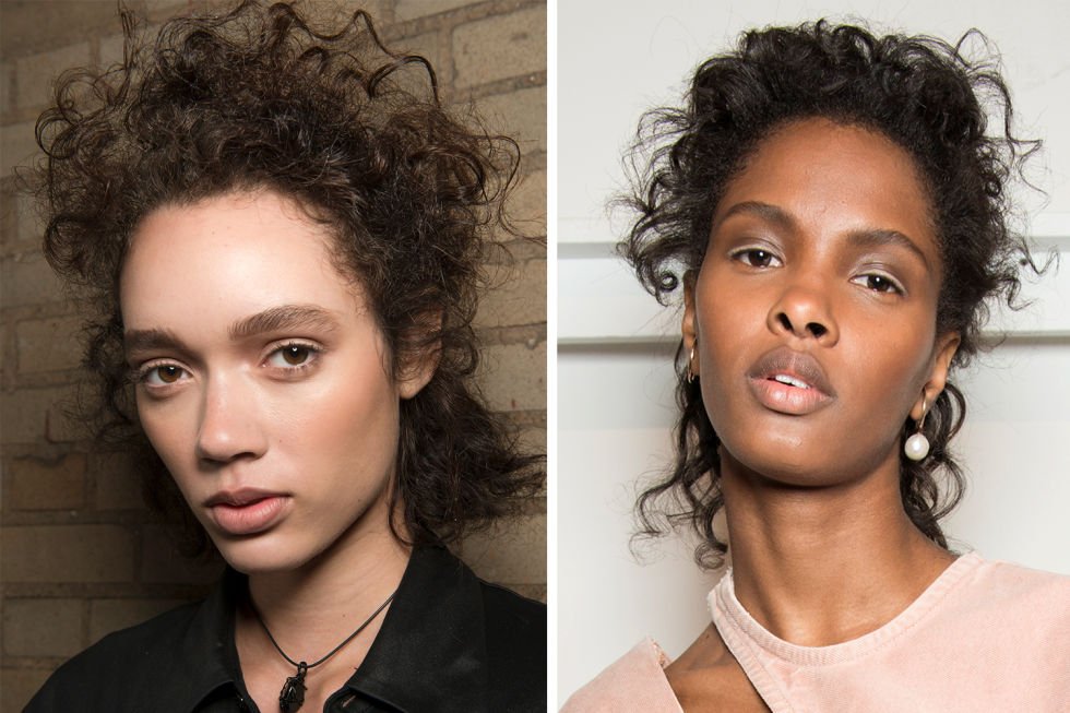 BACKSTAGE: Jonathan Simkhai defilesinde yarı toplanmış ve dağınık katlara sahip kıvırcık saçlar gördük.