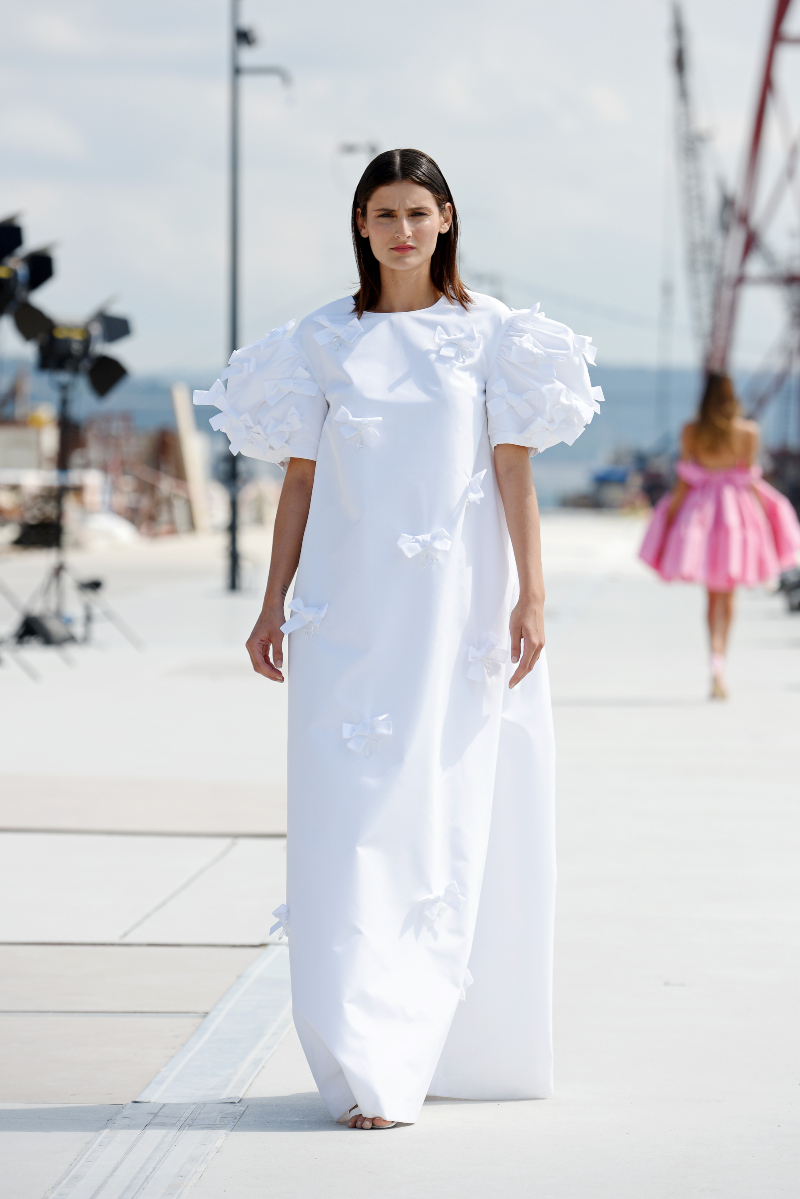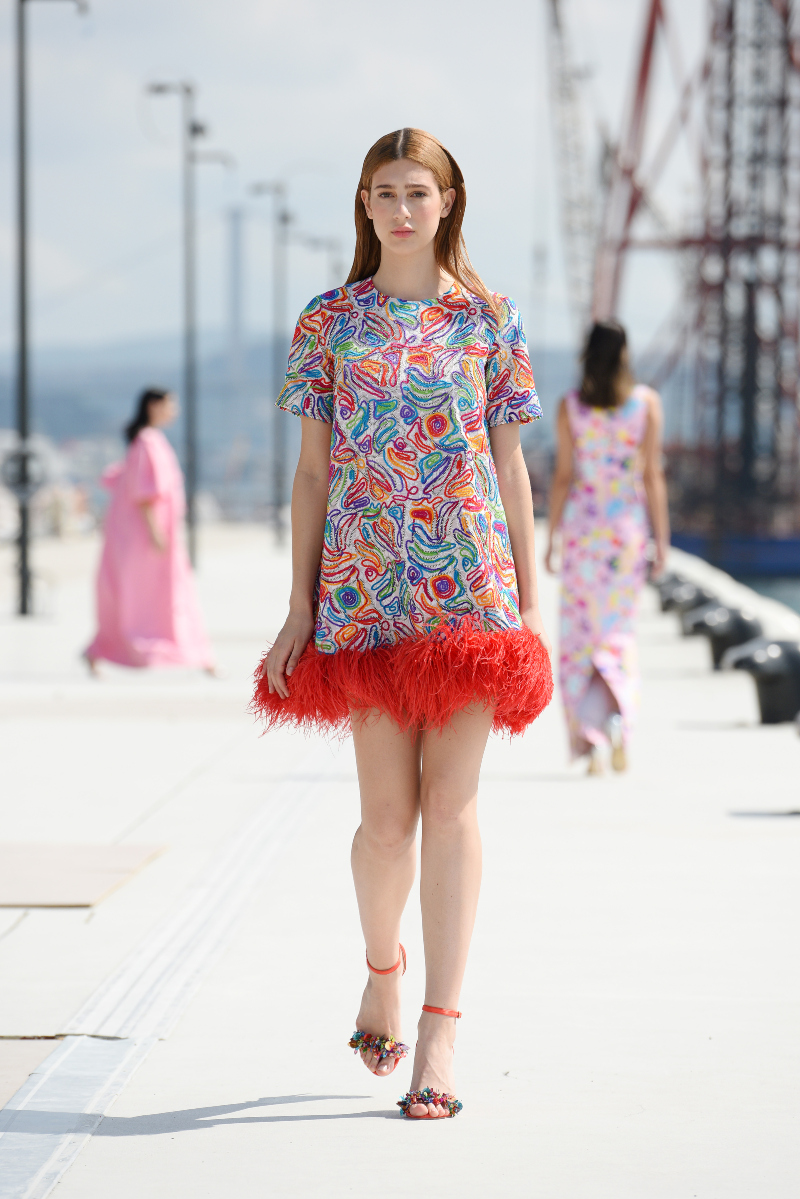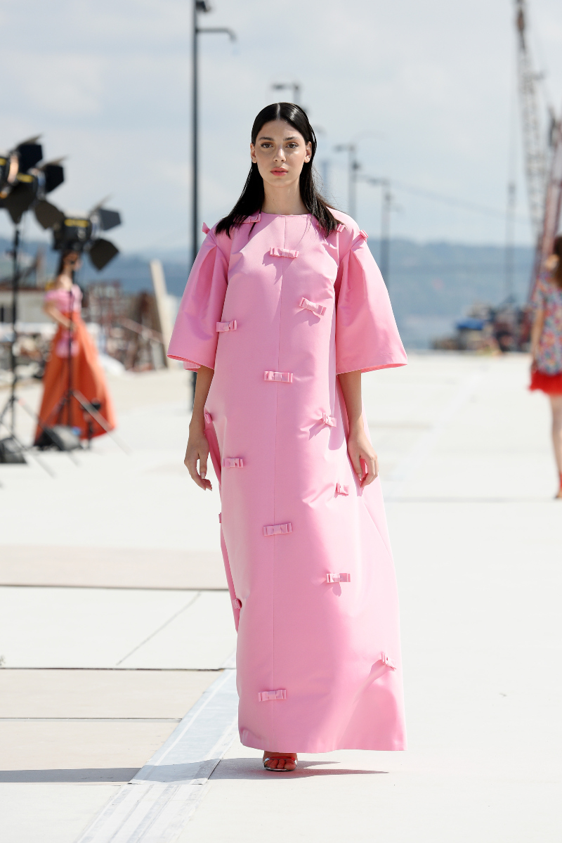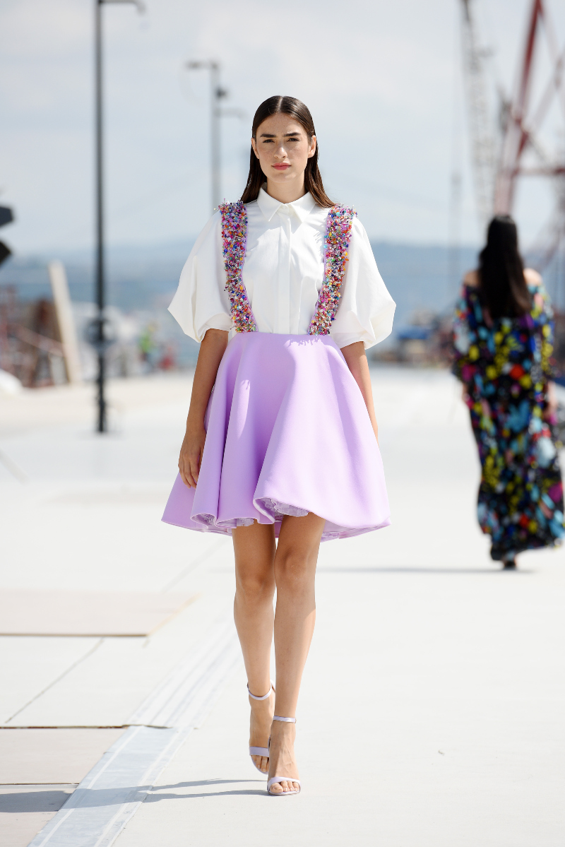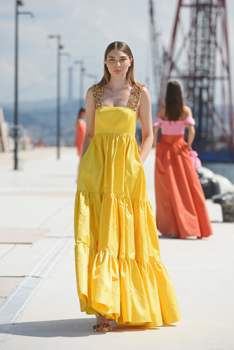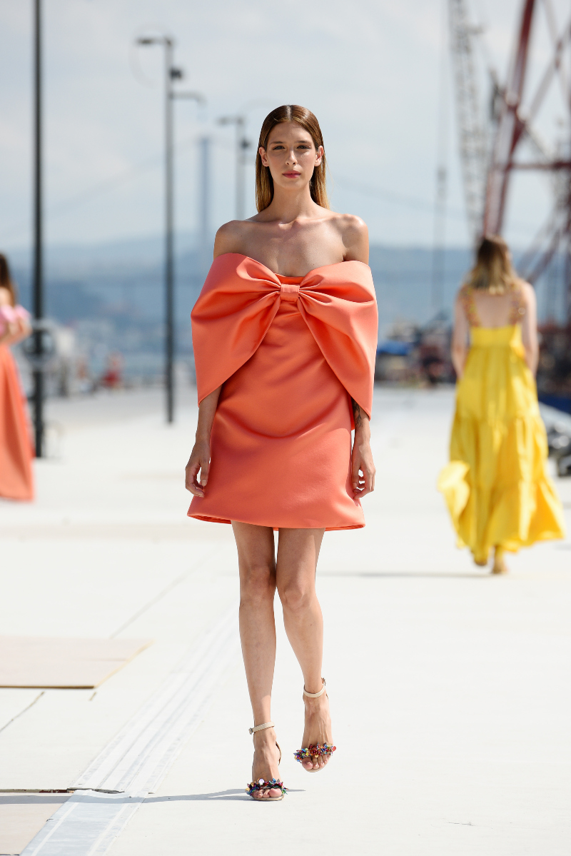 Koleksiyonda büyük etek formları, fiyonklar ve 3 boyutlu işlemeler en çok dikkat çeken detaylar.
