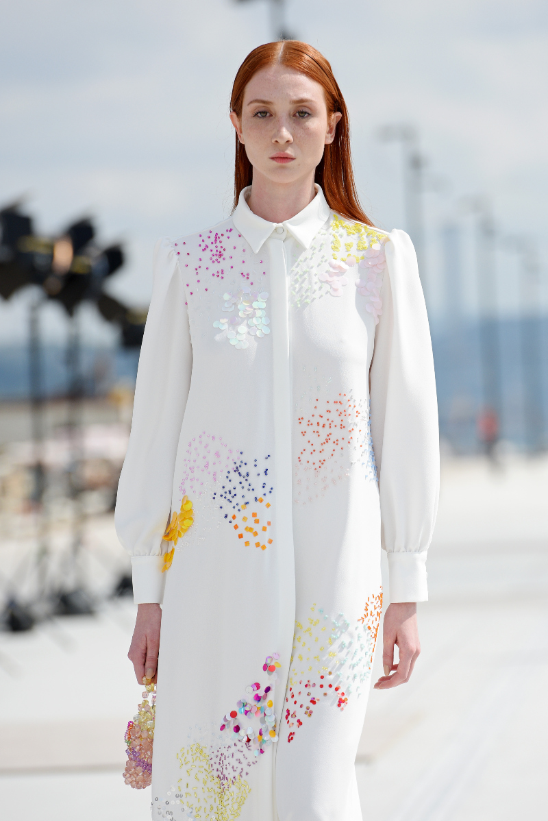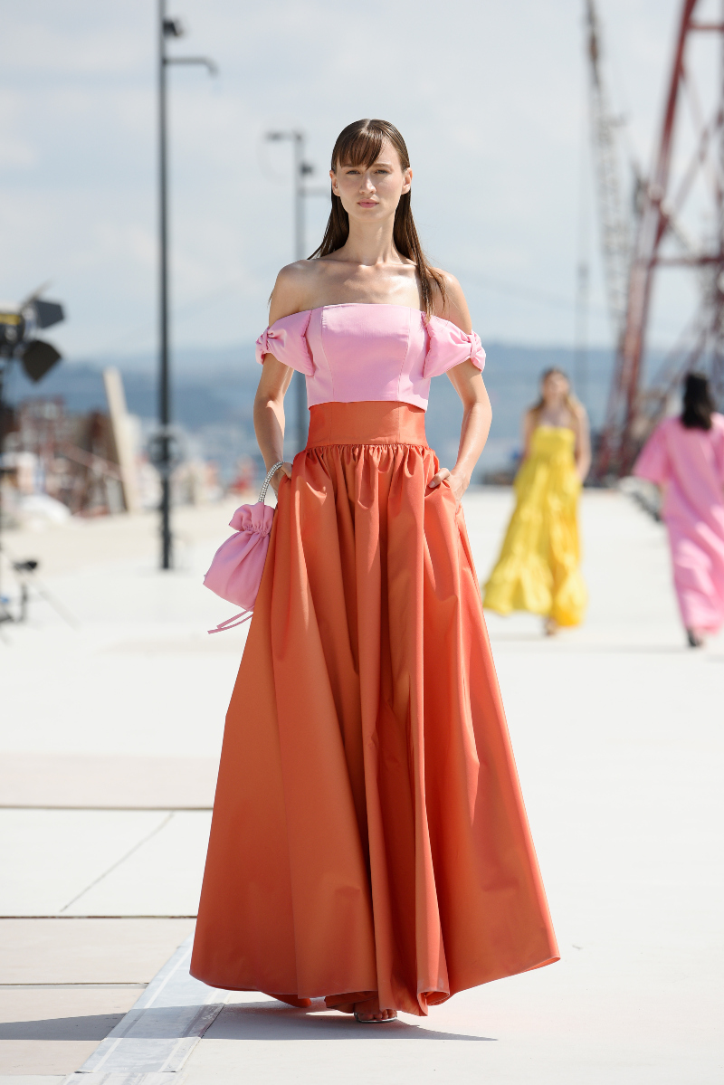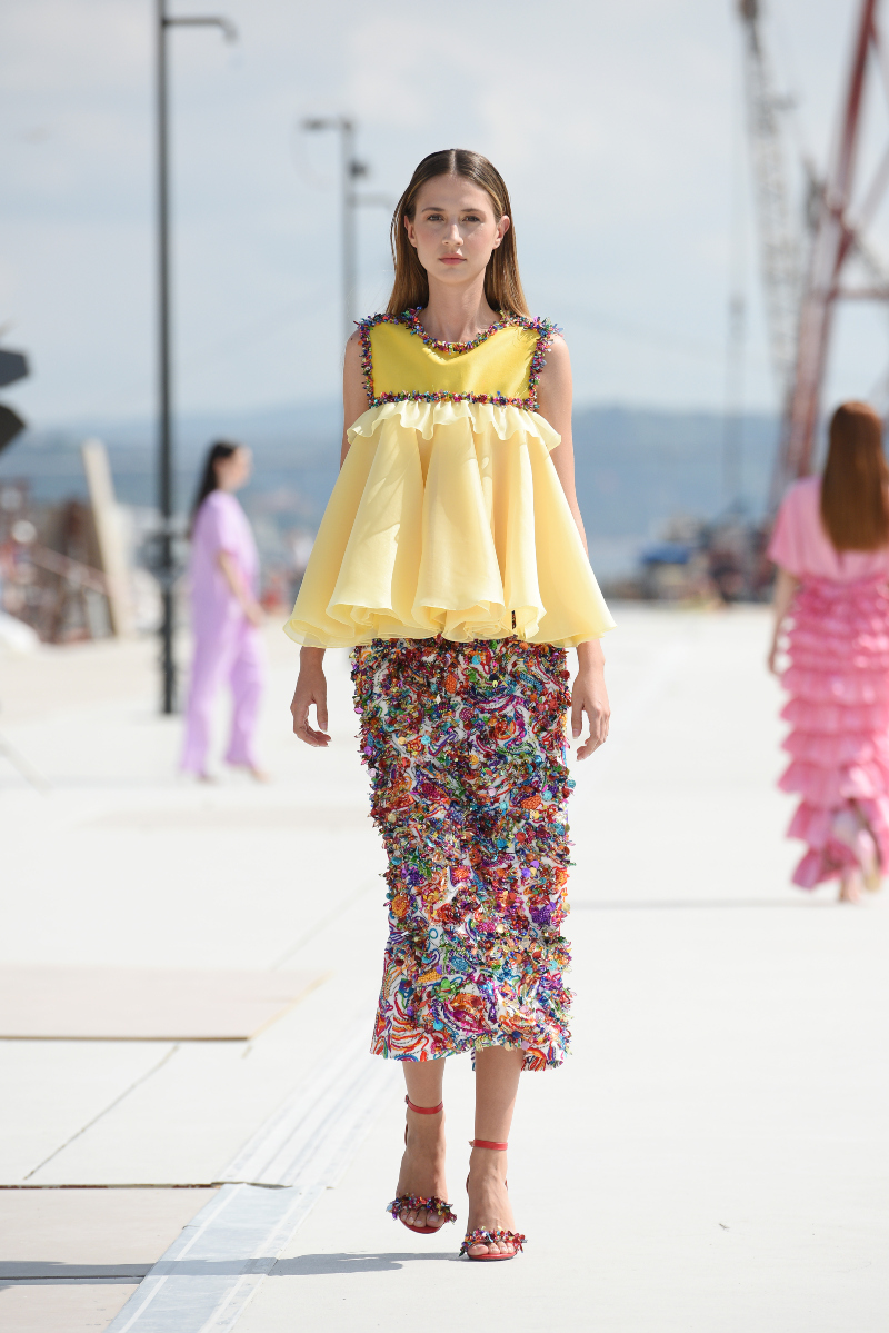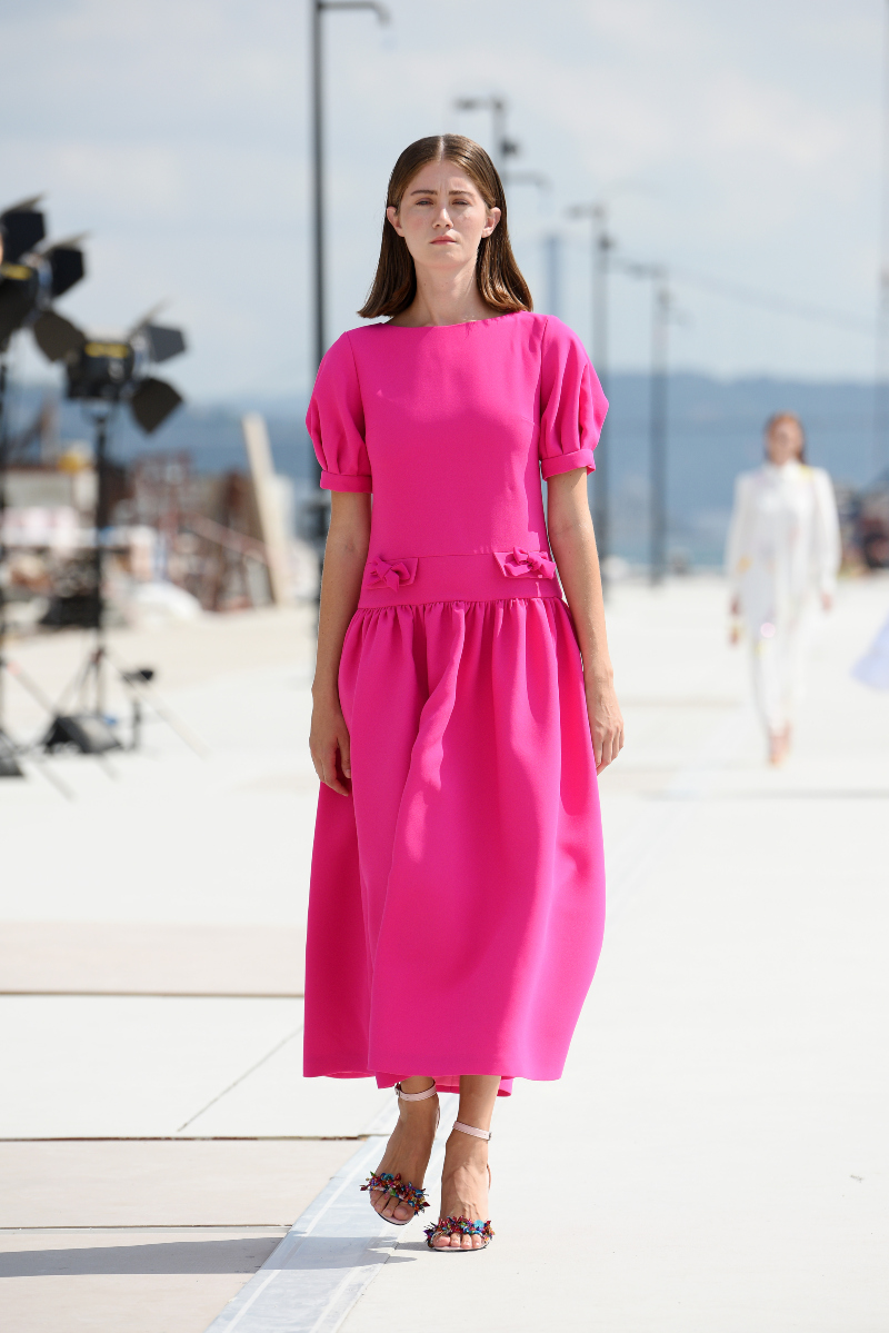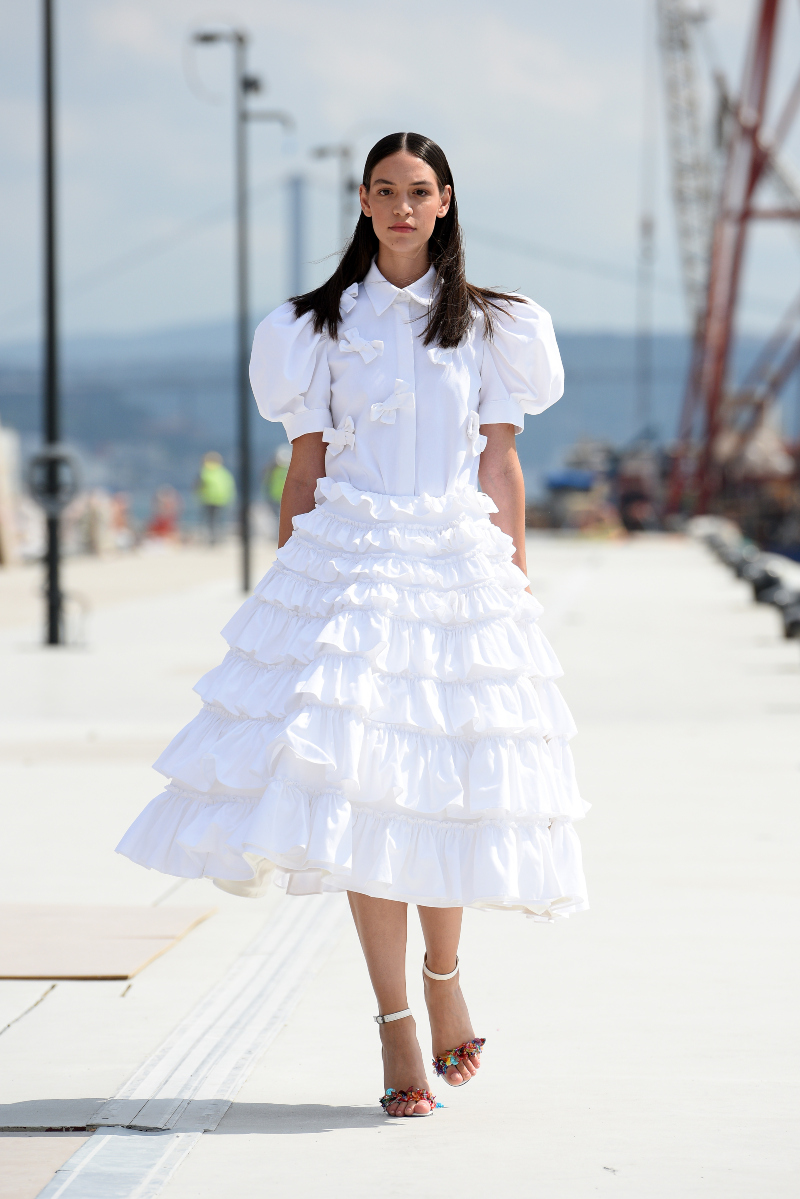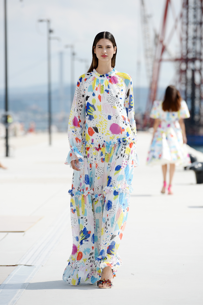 Koleksiyonda büyük etek formları, fiyonklar ve 3 boyutlu işlemeler en çok dikkat çeken detaylar.