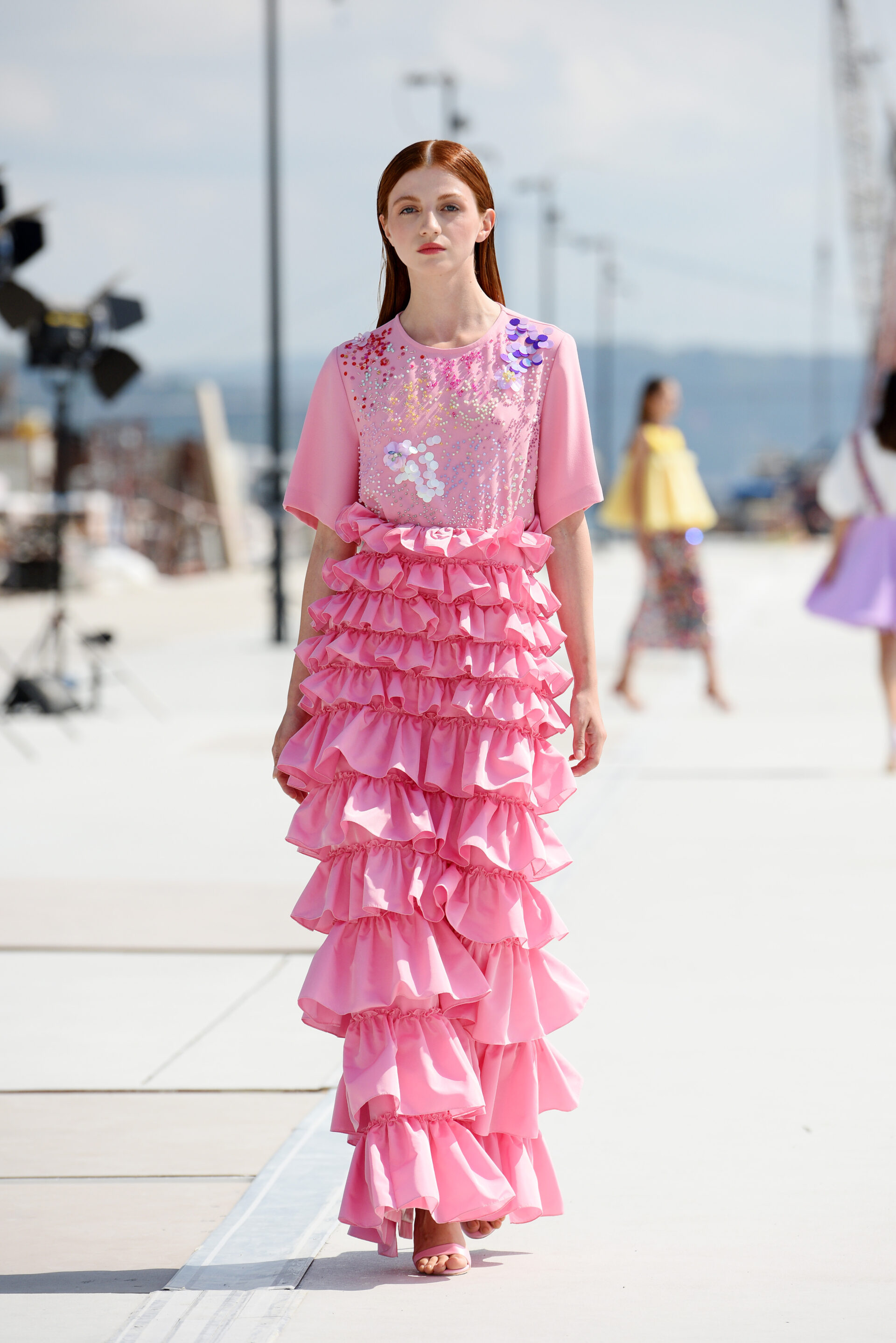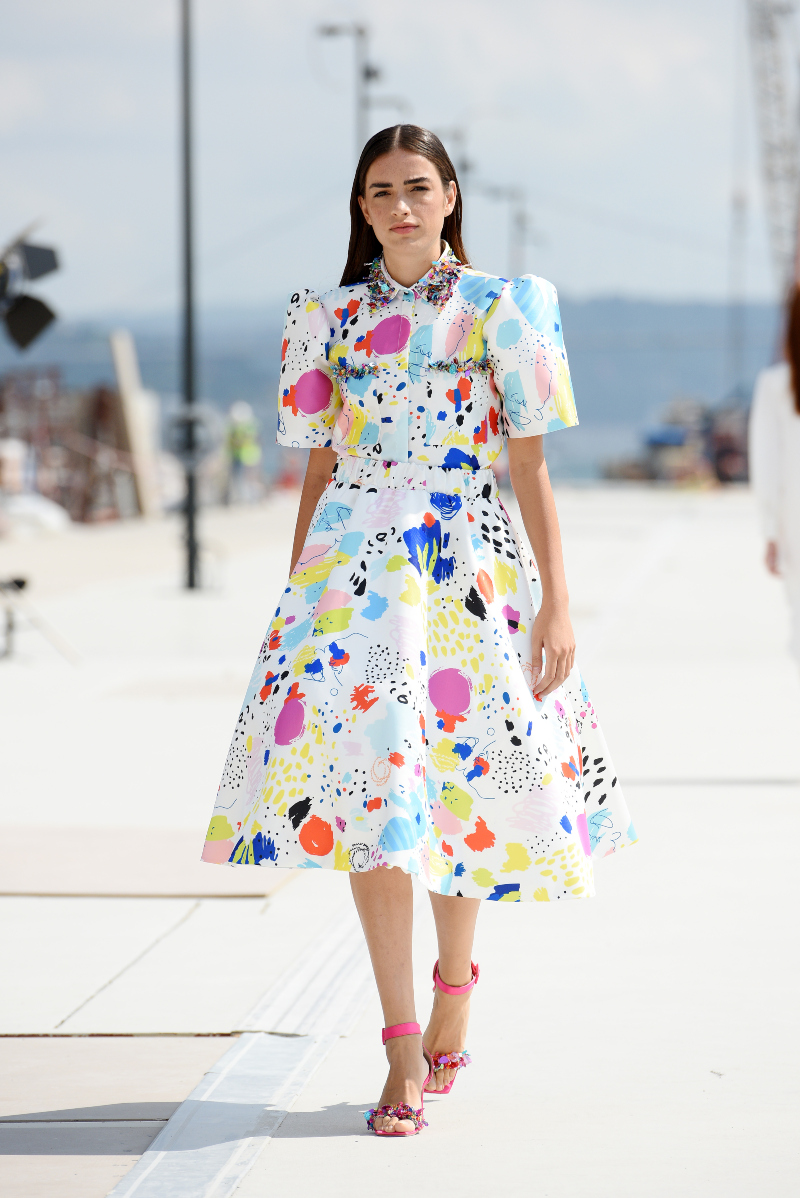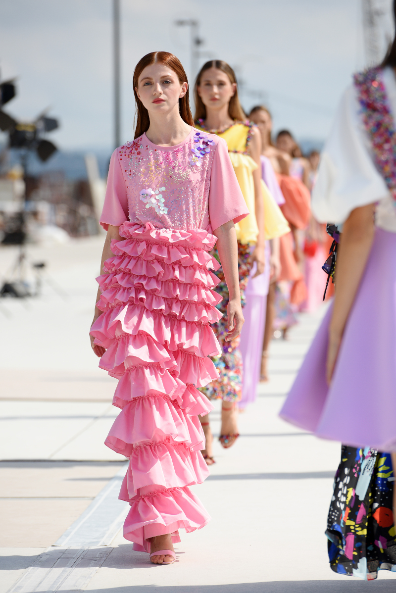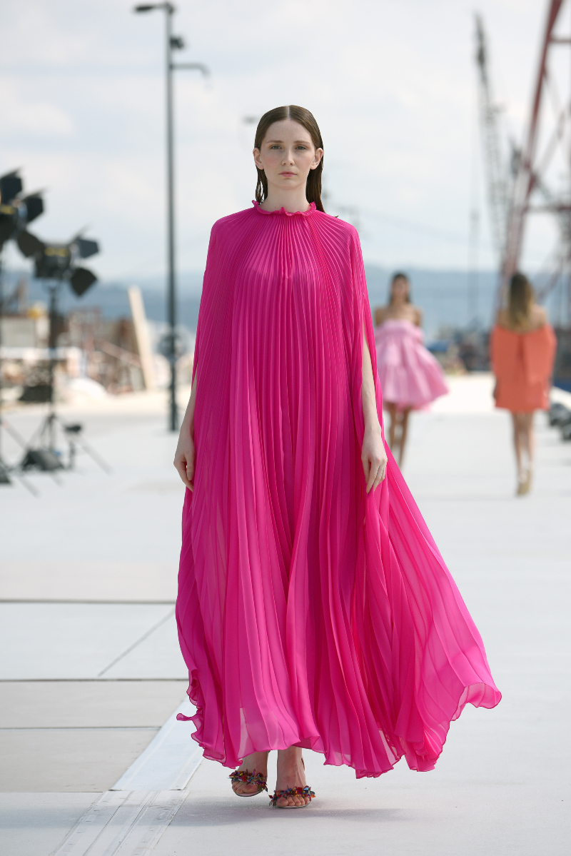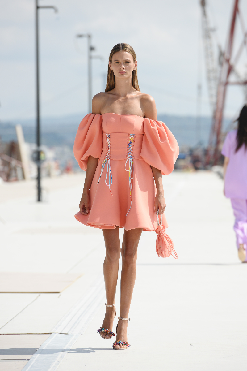Koleksiyonda büyük etek formları, fiyonklar ve 3 boyutlu işlemeler en çok dikkat çeken detaylar.