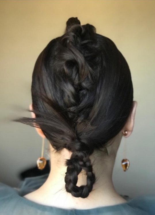 Bu modeli daha fazla ertelemeye gerek yok değil mi? Ensede toplanan küçük örgü topuz, özellikle de omuzları açıkta bırakan bir elbiseyle ideal ahengi yakalamaya hazır.