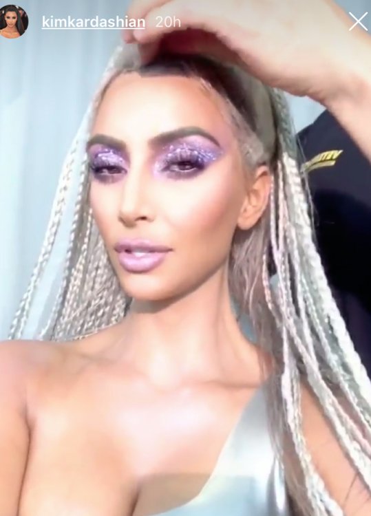 Stili ve güzellik görünümleri konusunda işini asla şansa bırakmayan Kardashian, buz sarısı rengindeki ince örgülerden oluşan peruğuyla yine çok konuşulmuştu. Leylak rengi far kullanımıyla mükemmel bir eşleşme yakalayan Kardashian’ın bu görünümünden kopya çekmek serbest.