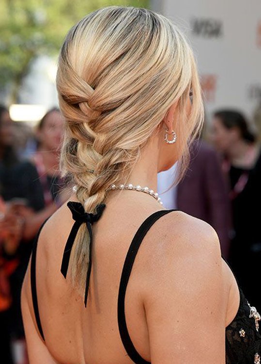 Basit ve sade bir Fransız saç örgüsüyle nasıl ihtişamlı görüneceğini Kate Hudson gerçekten iyi biliyor. Siyah kadife kurdele ile de bütünleştirdiği saçıyla “az çoktur” vurgusunu ışıldayarak yapıyor.