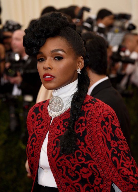 Ne kadar büyük ve daha cesur olursa, o kadar iyi. Janelle Monáe’nin bilgeliğini bu saç modeliyle daha da ortya çıkıyor. Yandan omuzlarına sarkan örgüye ilave olarak, başının üstüne yerleştirilen diğer örgü ve ikisinin bütünlüğü özel bir davet için mükemmel uyumu ortaya çıkarıyor.