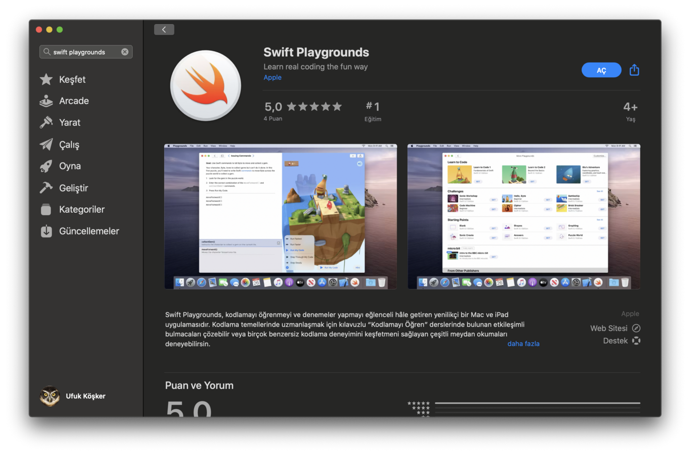 Bu isimlendirmenin çok doğru olduğunu düşünüyorum. Playgrounds (oyun bahçesi) Swift yazılım dilini öğrenmeyi eğlenceli hale getiren bir uygulama. İçerisinde Swift yazılım dilinin temellerini atacağınız birçok algoritma oyunları mevcut. Eğer bir Mac cihaza ya da iPad cihaza sahipseniz App Store uygulamasından indirip hemen Swift öğrenmeye başlayabilirsiniz. İşte bu yüzden oyun bahçesi denilmesini doğru buluyorum.
