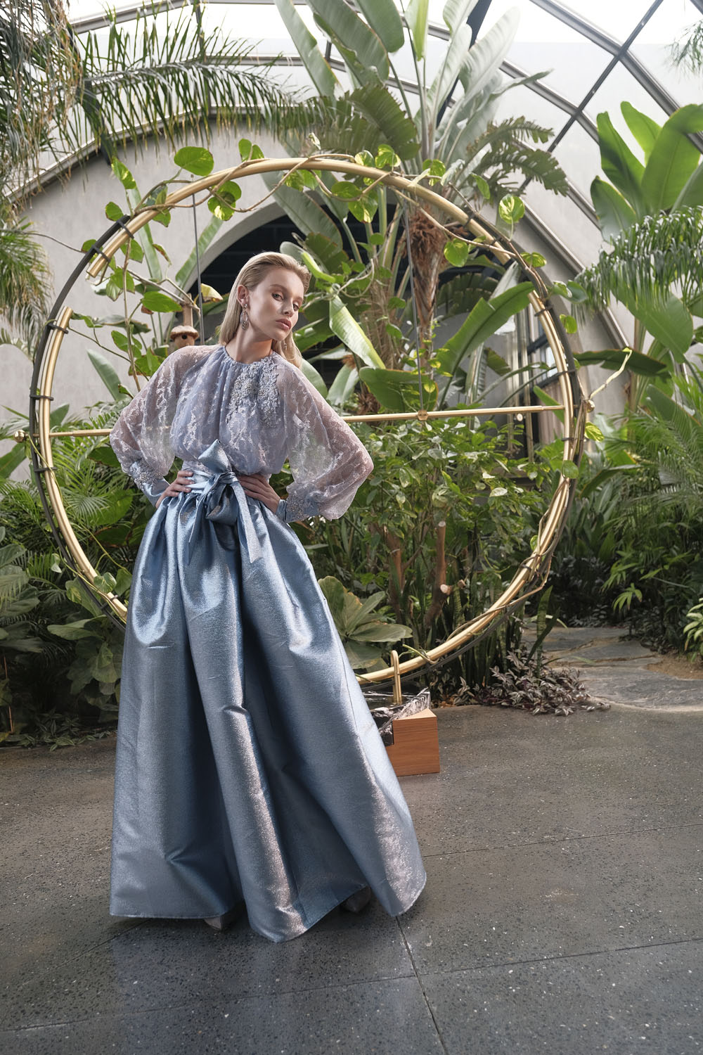 “Marka geleneğimizin uzantısı romantizm, kozmik bir yaklaşımla bu kolektif enerjinin içinde var oluyor diyen” Özlem Süer Gök Kubbe Koleksiyonu’nun öyküsünü “Zamansız ve belki tüm zamanların güzel enerjisiyle masalsı bir algoritmanın eseri” olarak özetledi.