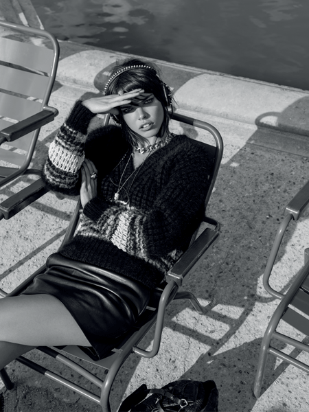 YÜN TRİKO: SPORTMAX, ETEK: BARBARA BUI, ZİNCİR KOLYE: CHANEL, UZUN KOLYE: BIBI VAN DER VELDEN