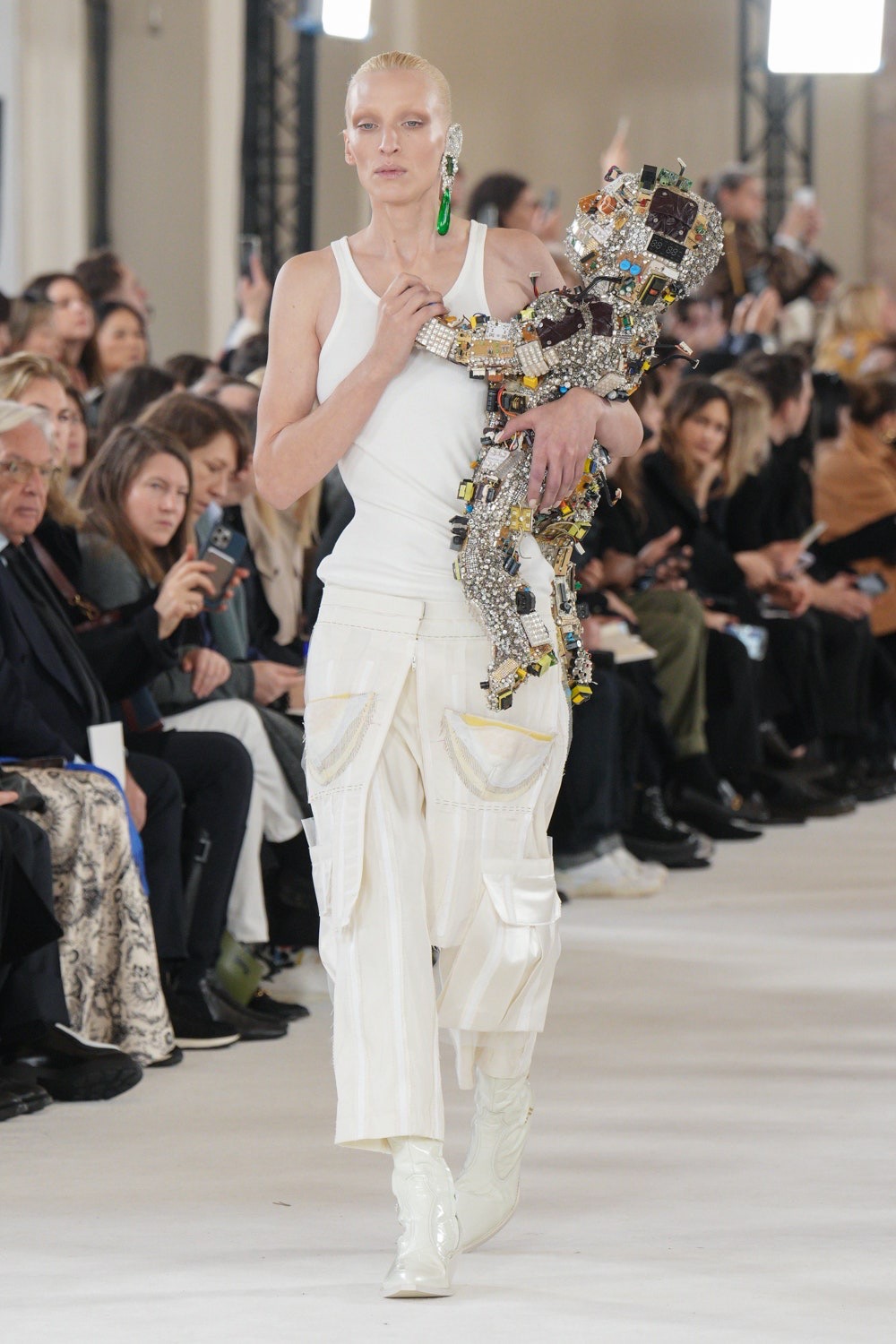 Daniel Roseberry’nin Schiaparelli koleksiyonu, estetik bir dönüşü temsil ediyor. Farklı set dekorasyonundan vazgeçerek, cesur siluetlere ve güçlü tasarımlara odaklanan Roseberry, kırmızı halının en cesur partneri olma yolunda ilerliyor. Detaylarında bir sürü Alexander McQueen etkisi taşıyan koleksiyon, değişimin ve gerçekliğin modayı nasıl etkilediğini çarpıcı bir şekilde anlatıyor.