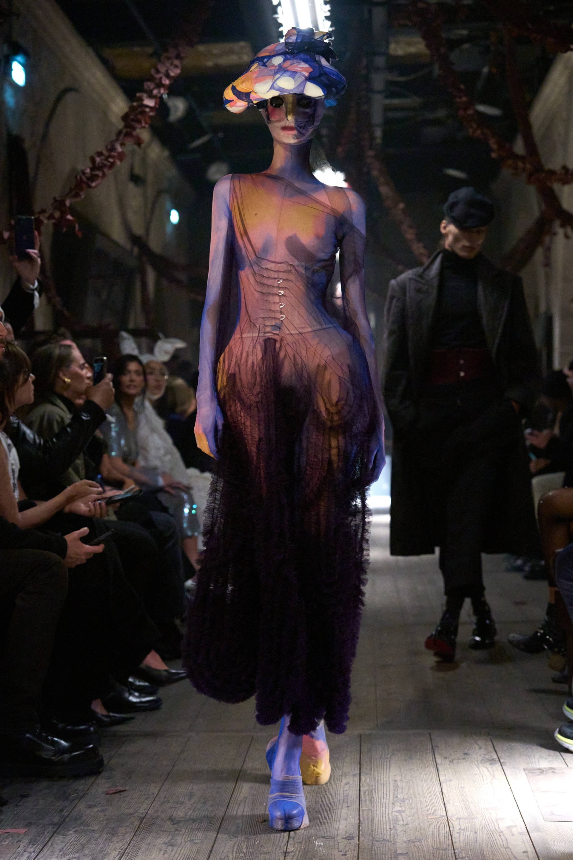 Maison Margiela Kreatif Direktörü John Galliano’nun çılgınca kutladığı kıyafet dönüştürme güçleri, moda dünyasında kendine özgü bir hayranlık bırakıyor. Belle Epoque’un yozlaşmış atmosferini yansıtan bu koleksiyonlar, nostaljik ve ilerici bir denge sunarak modanın geçmişi ve geleceği arasında benzersiz bir köprü kuruyor. Defile Margiela’nın gölgesinden ziyade, bir Galliano gibi görünse de her açıdan unutulmayacak bir moda anıydı.