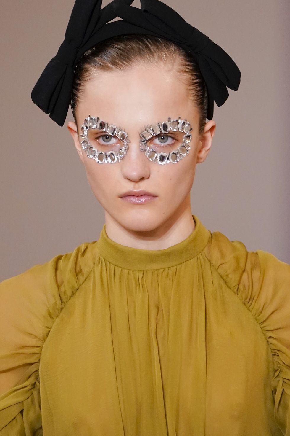 Isamaya Ffrench geçtiğimiz sezon Valli defliesi için yarattığı çiçek kirpikli gözlerle çok konuşulmuştu. Bu yıl ise Ffrench, modellerin göz çevresini Swarovski kristaller ile kapladı. İddialı saçlarla birleşen bu görünüm; maksimalist Valli kadınını harika bir şekilde yansıtıyordu.
