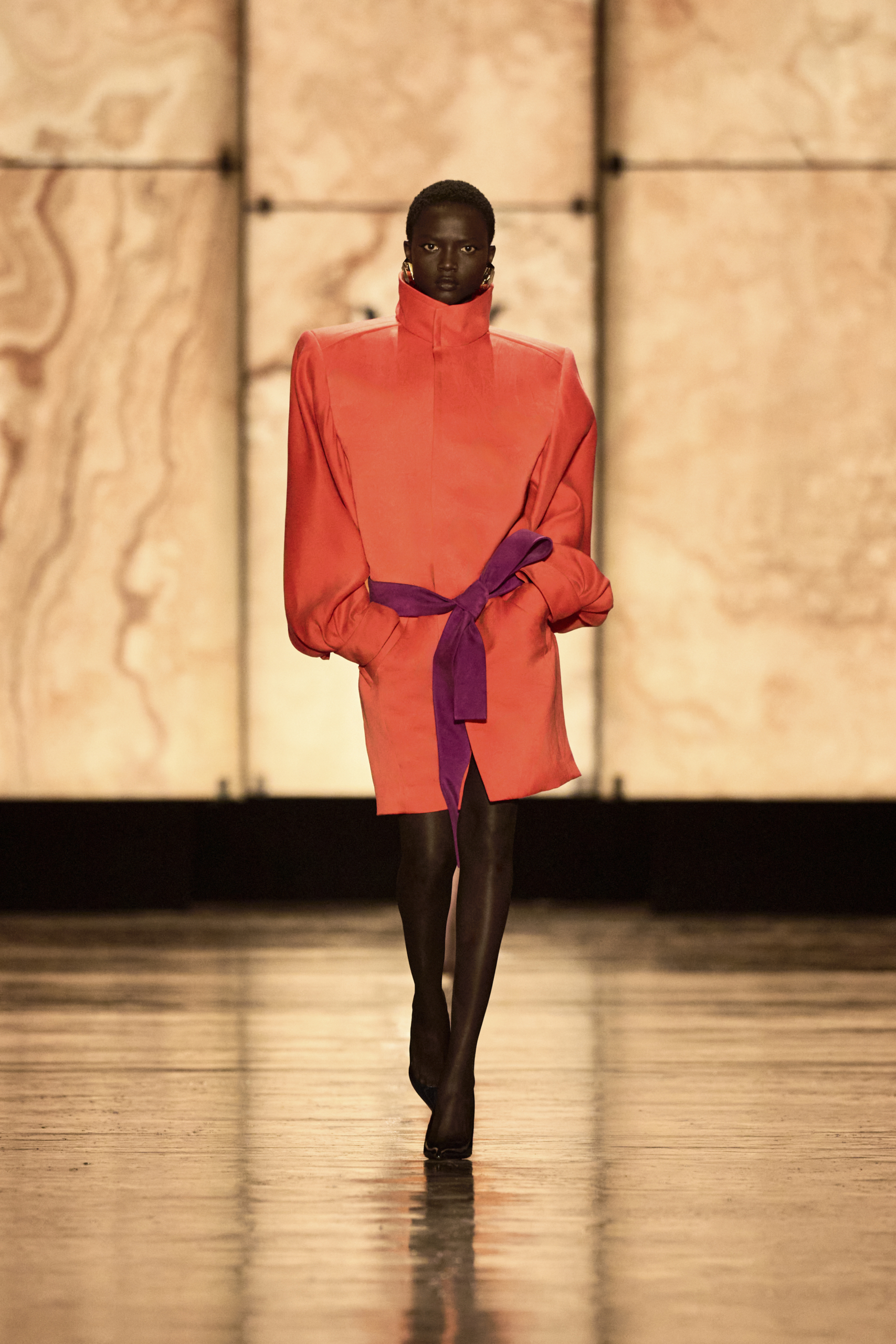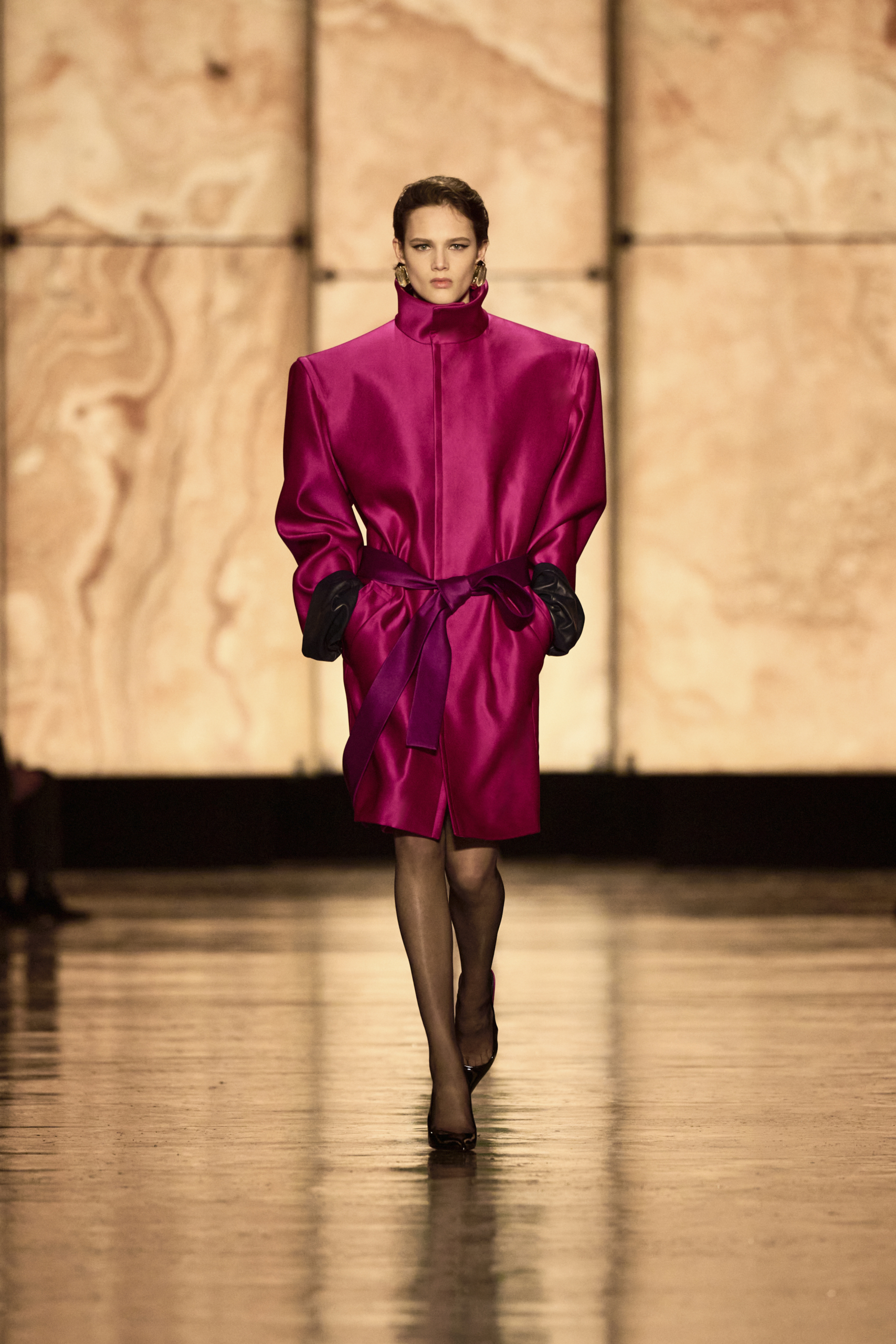 Anthony Vaccarello’nun modaevine hazırladığı 2025 Kış kadın koleksiyonu, süsten ve gereksiz detaylardan arındırılmış net parçalarla bu kurucu anlayışı pekiştiriyor. Giysiler, gösteriş veya dolgu malzemeleriyle değil, kumaşlar ve kusursuz terzilikle şekilleniyor. Saf formlar ve hacimler, kesim ve yapıdan doğuyor.
