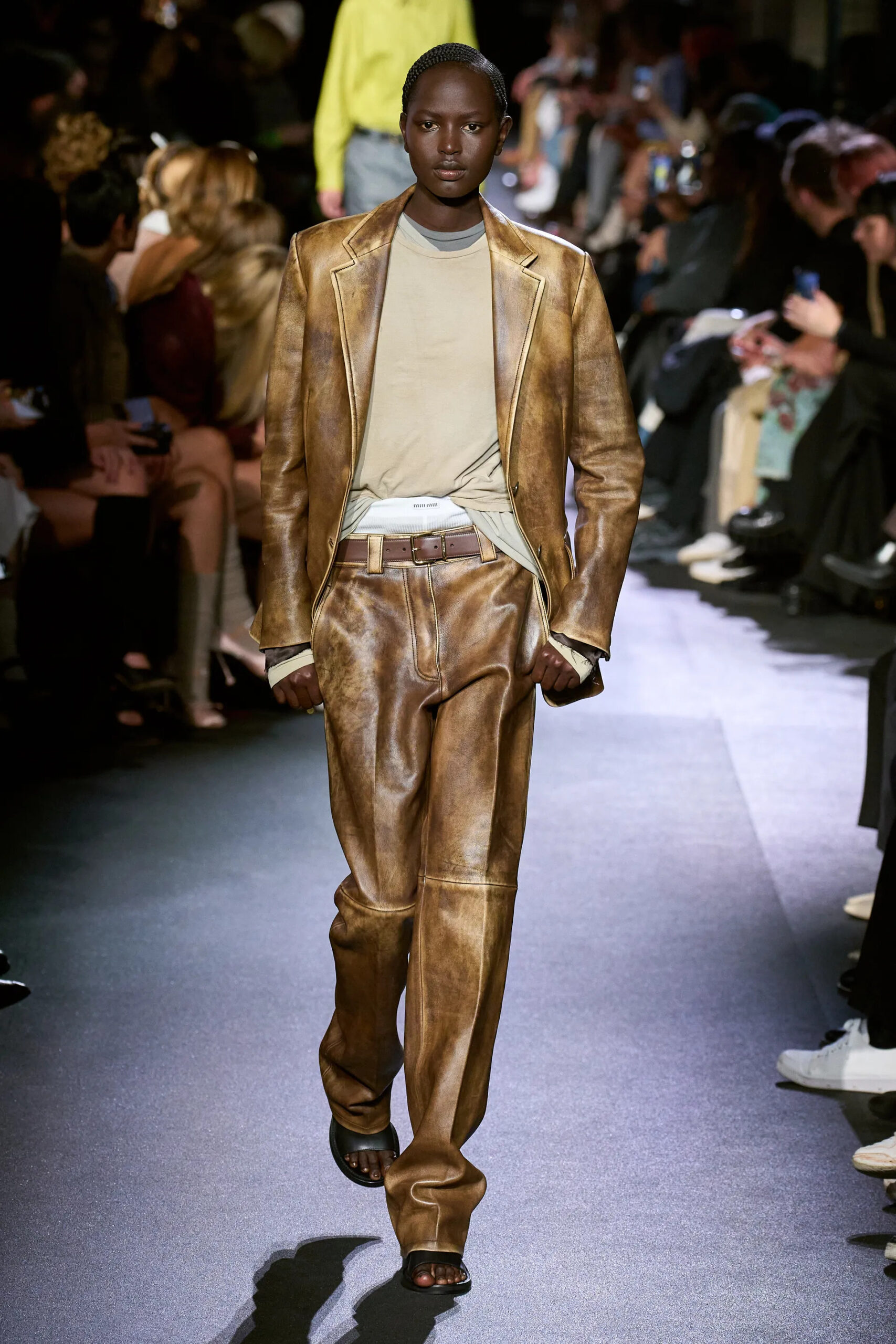 Milano Moda Haftası’nda da sıkça karşılaştığımız deri parçalar, Paris podyumlarında ‘takım’ olarak karşımıza çıkıyor. 2023 İlkbahar-Yaz aylarında lüks ve ihtişam kodlu bir görünüm istiyorsanız, deri bir takım kesinlikle işinizi görecektir.