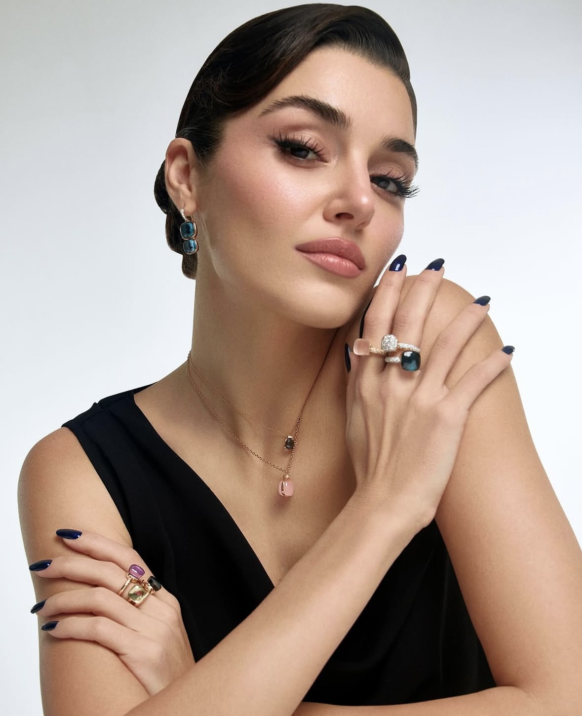 Hande Erçel’in zarif ve özgün stil anlayışı, Pomellato’nun rafine tarz felsefesiyle birebir örtüşüyor. Sanatsal başarılarının yanı sıra, Erçel kadınların güçlenmesi konusunda da tutkulu bir isim ve bu yönüyle, kurulduğu günden bu yana kadınları kutlayan ve destekleyen Maison için doğal bir seçim oluyor. “Hande Erçel, gerçek lüksün özgünlük ve özgürce kendini ifade edebilmekten geçtiğini bilen yeni nesil yaratıcı sesleri temsil ediyor” diyor Pomellato CEO’su Sabina Belli. “Sanata olan içten tutkusu ve kadınları güçlendirme konusundaki kararlılığı, markamızın değerlerini kusursuz bir şekilde yansıtıyor.” Hande Erçel bu özel çekimde, Pomellato’nun ikonik Nudo koleksiyonundan en sevdiği parçaları taşıdığı zarif portreleriyle yer alıyor.