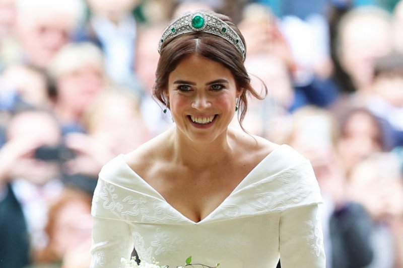 Aksesuar cephesinde ise; Prenses Eugenie beyaz elbisesini, büyükannesi Kraliçe’den ödünç al?nm?? bir zümrüt damlas? olan taç ve sade küpeler ile e?le?tirdi.