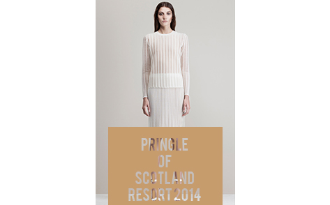 Pringle of Scotland’ın baş tasarımcısı Massimo Nicosa, marka için hazırladığı ilk koleksiyonu art deco’nun pop ile birleşmesi olarak tanımlıyor. Keskin hatlı tasarımların hakimiyetindeki koleksiyonda plili etekler, elbiseler ve transparan bluzlar yer alıyor.