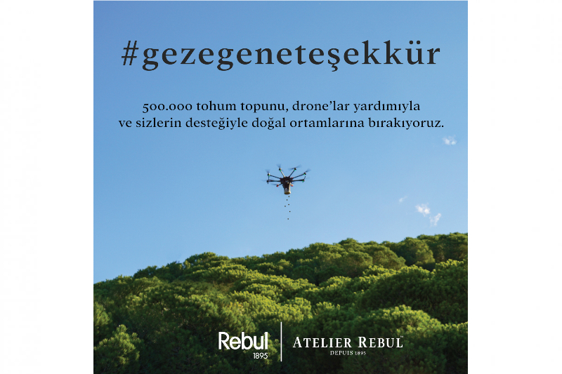 125 yılı aşkın köklü tarihiyle nesiller arasında seyahat eden Rebul Şirketler Grubu, gelecek nesillere daha temiz, daha yaşanabilir bir dünya hazırlama misyonuyla çalışmalarına devam ediyor. Son olarak, sürdürülebilirlik eforlarına yeni bir adım olan ‘Gezegene Teşekkür’ ağaçlandırma projesini hayata geçiren marka, 500.000 tohum topunu, insansız hava araçları ecoDrone’lar ile ağaçlandırılması gereken alanlara dağıtacak.