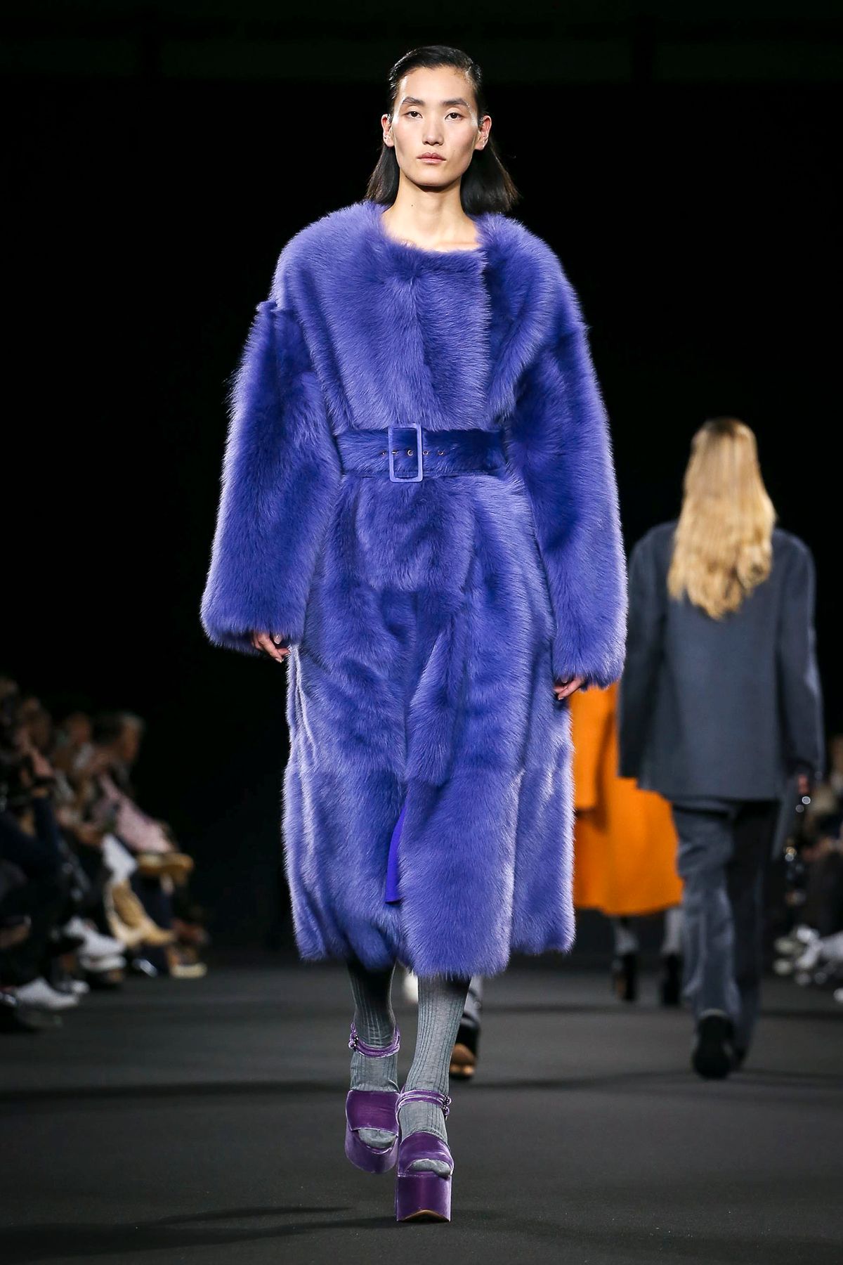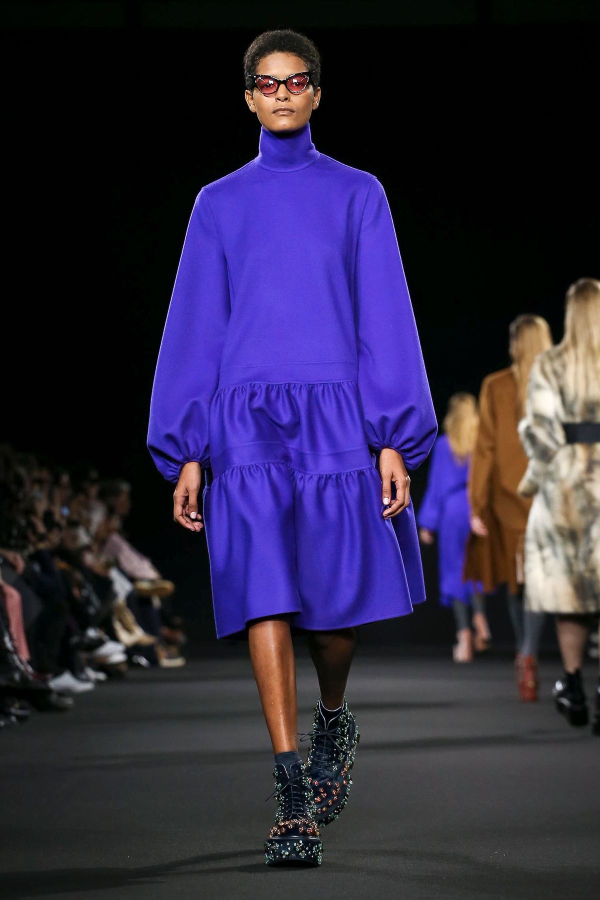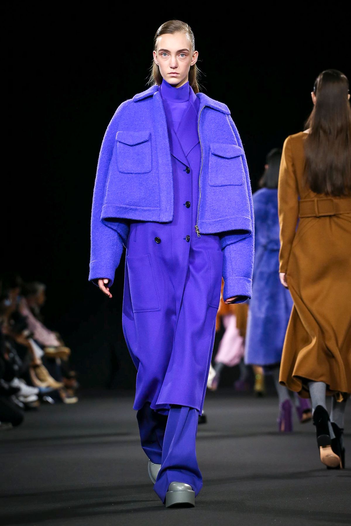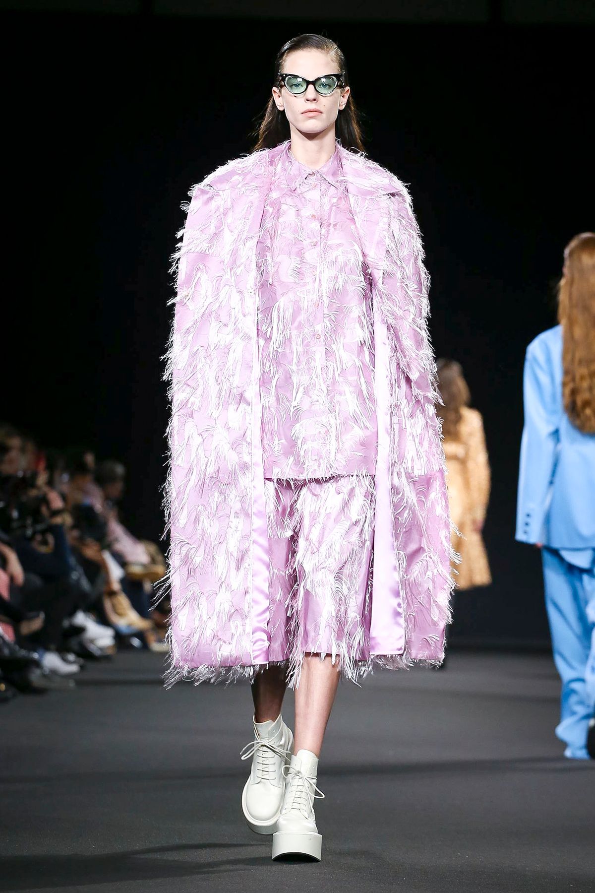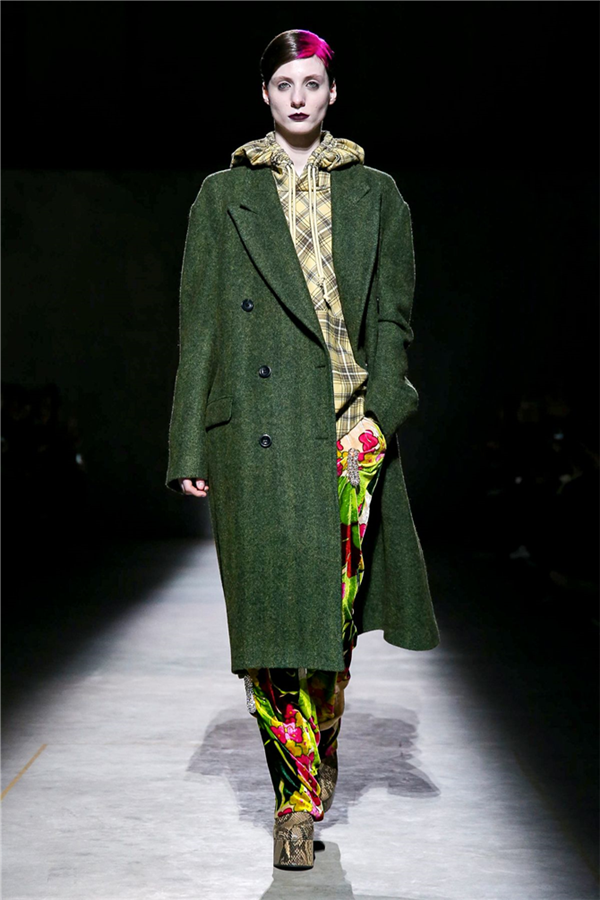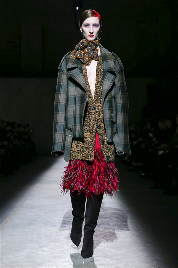 Mor ve siyahın ön planda olduğu koleksiyonda; püskül detayları ve bol paça pantolonlar da ydikkat çekenler arasındaydı.