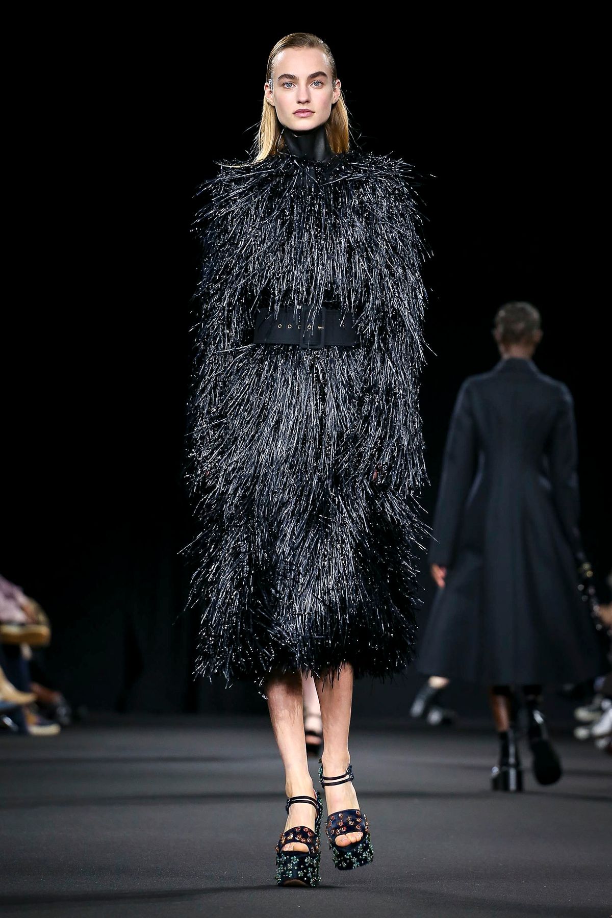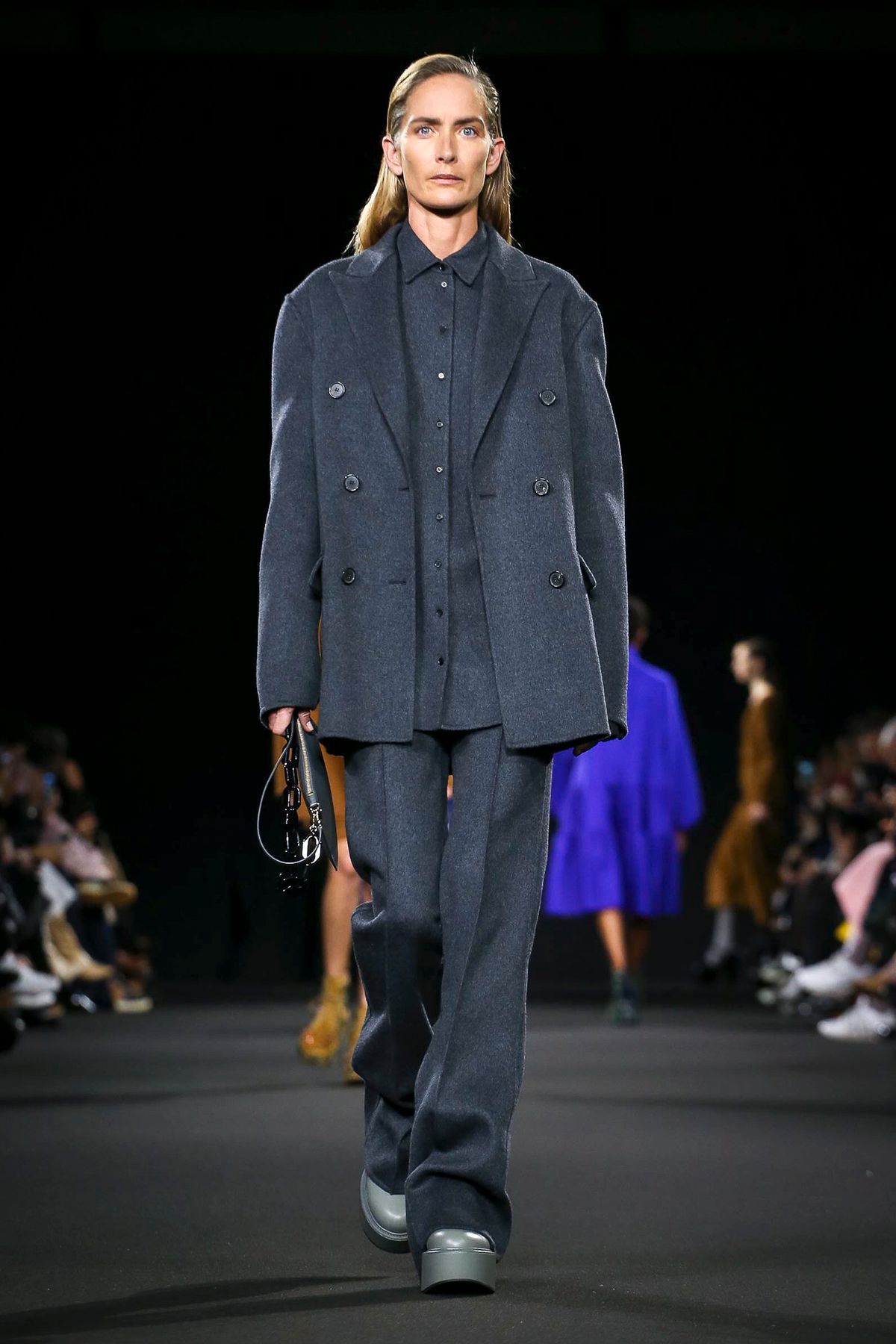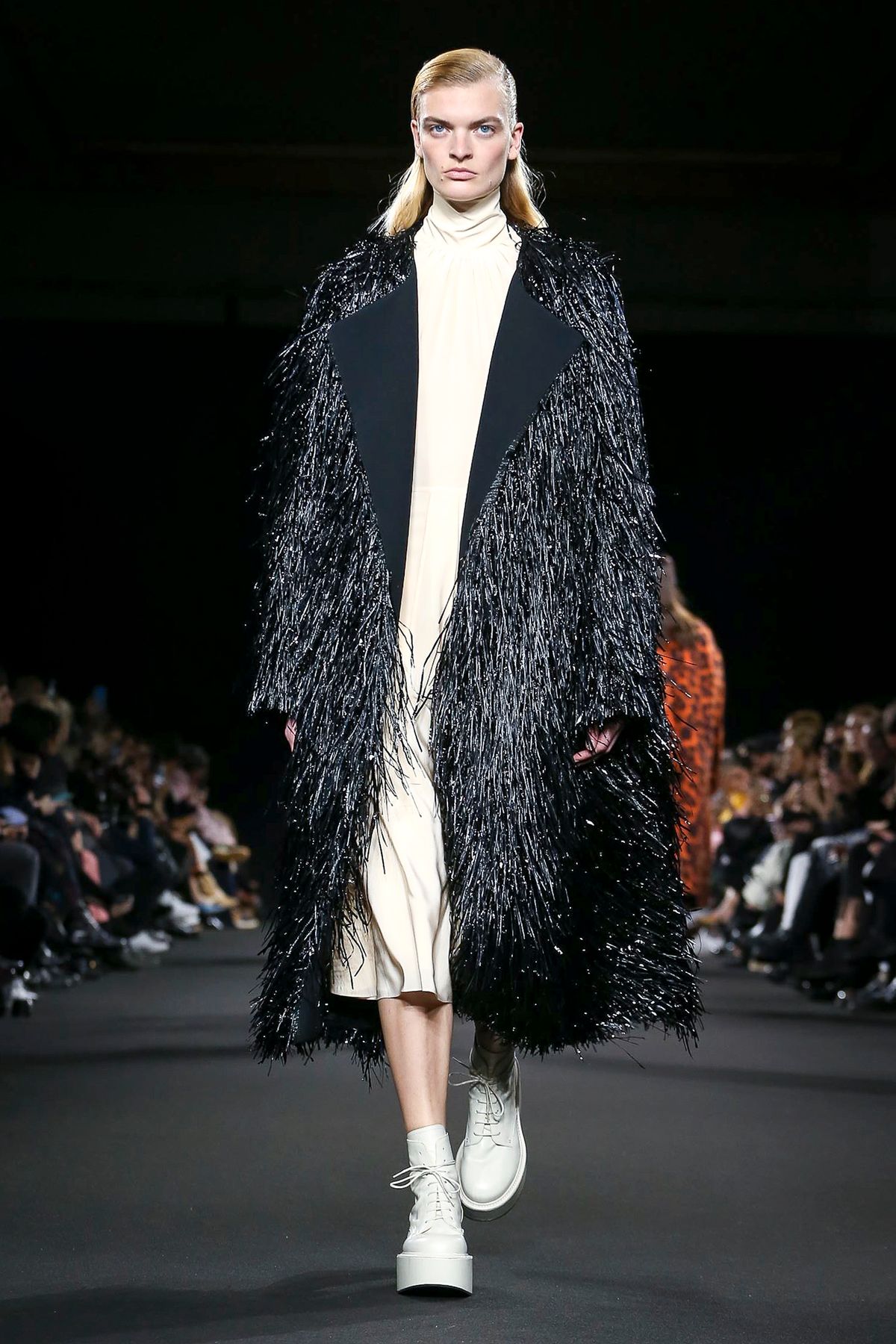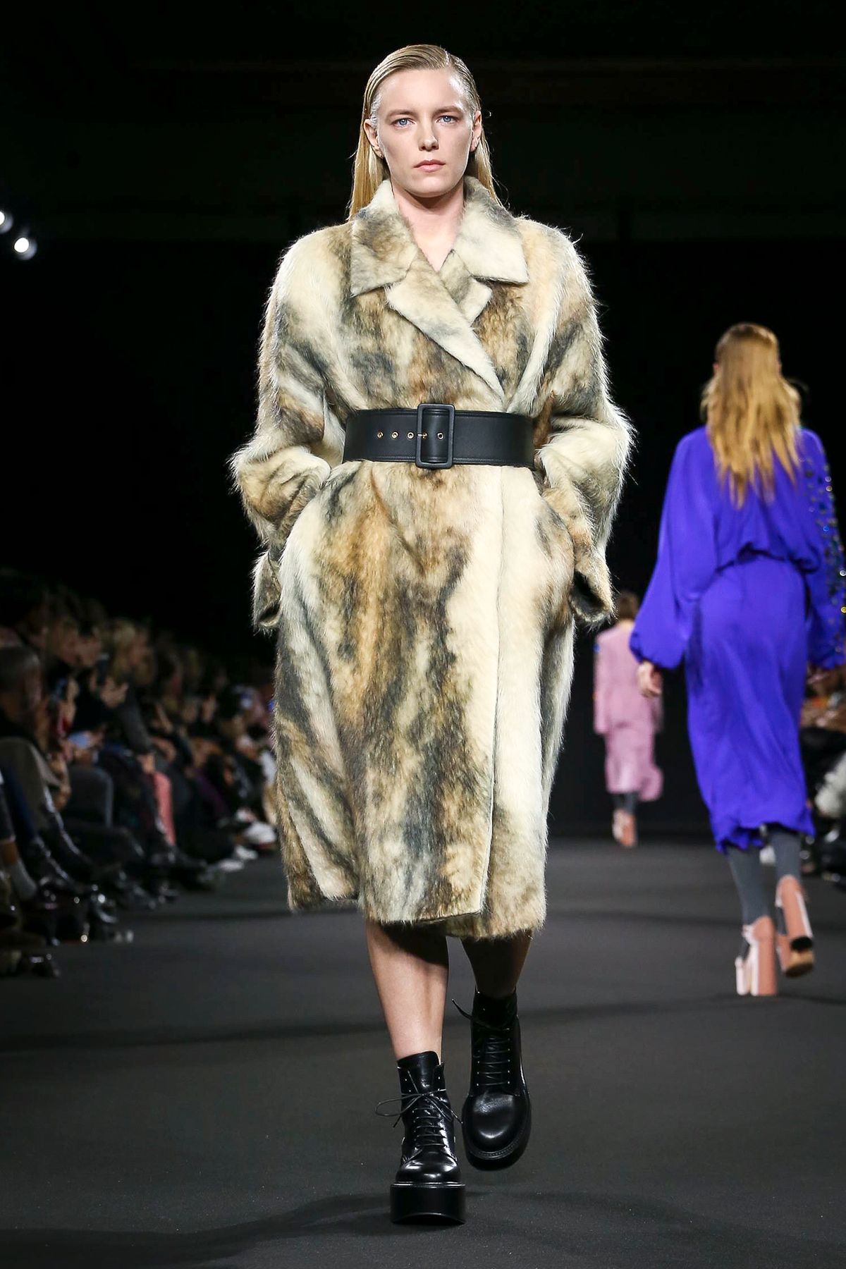 Mor ve siyahın ön planda olduğu koleksiyonda; püskül detayları ve bol paça pantolonlar da ydikkat çekenler arasındaydı.