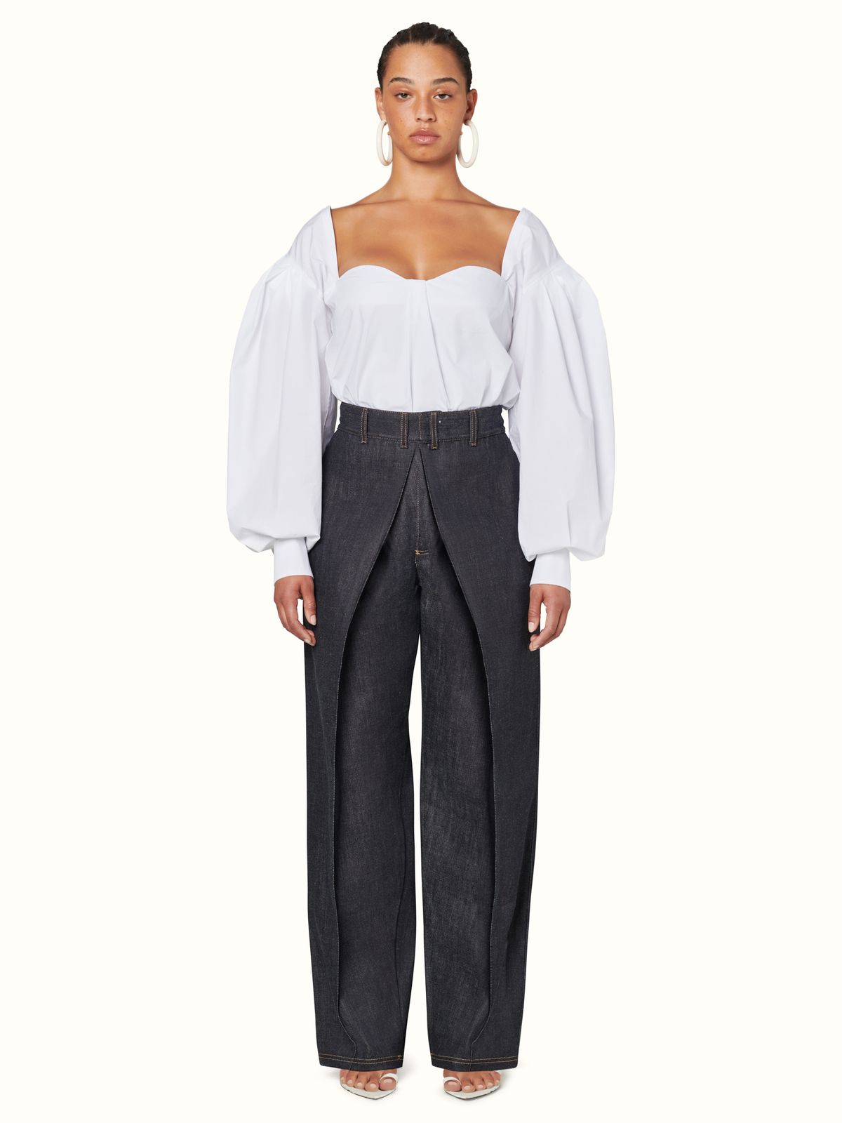Tasarımlarda güçlü bir görünüm yaratmak amaçlanmış. Bu nedenle koyu renk jean detaylar, hacimli kollar ve belirgin dikişler göze çarpıyor.