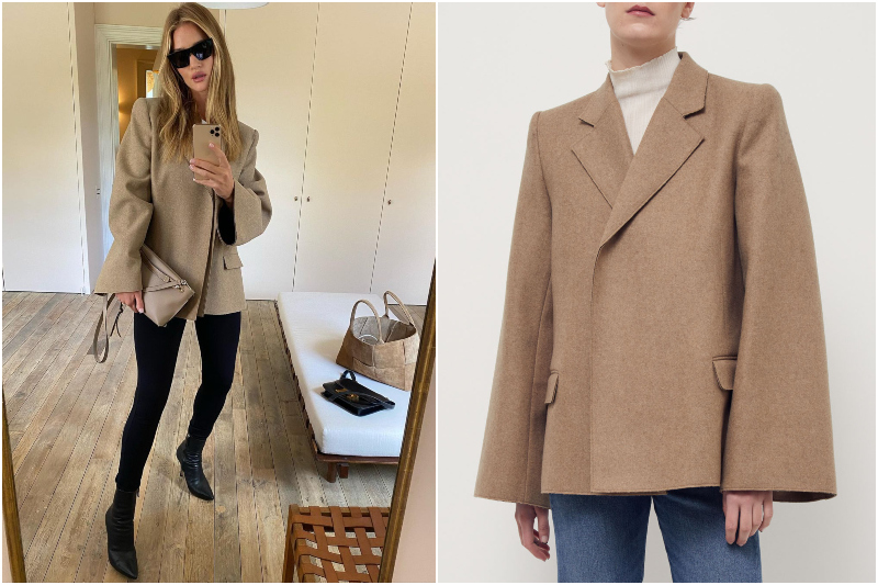 Blazer ceketler her sezonun vazgeçilmezi olsa da; farklı kesimlere sahip versiyonlarıyla sezona hareket katmak mümkün. Totême markasının Bone blazer ceketini; kendisiyle özdeşleşen pudra tonlarında tercih eden Rosie; gerçek bir “giy-çık” kombini formülü sunuyor.