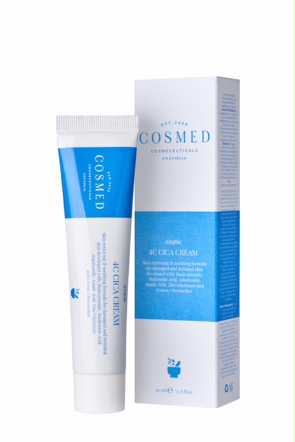 Ciltteki hasarı onarmak ve onarım sürecini hızlandırmak için özel olarak geliştirilen Cosmed 4C Cica Cream, formülüyle dikkat çekiyor. Krem, Centella Asiatica bitkisinden elde edilen dört aktif bileşen sayesinde kolajen sentezini artırarak hasarlı dokunun hızla iyileşmesine yardımcı oluyor. Anti-inflamatuar etkisiyle hasar sonrası oluşabilecek tahrişi azaltan krem, çinko içeriğiyle ile hasarlı bölgede bakteri oluşumunu engelliyor. Cildi derinlemesine besleyip nemlendiren ürün, cildin doğal bariyerini güçlendirerek dış etkenlere karşı daha dayanıklı hale gelmesini sağlıyor.