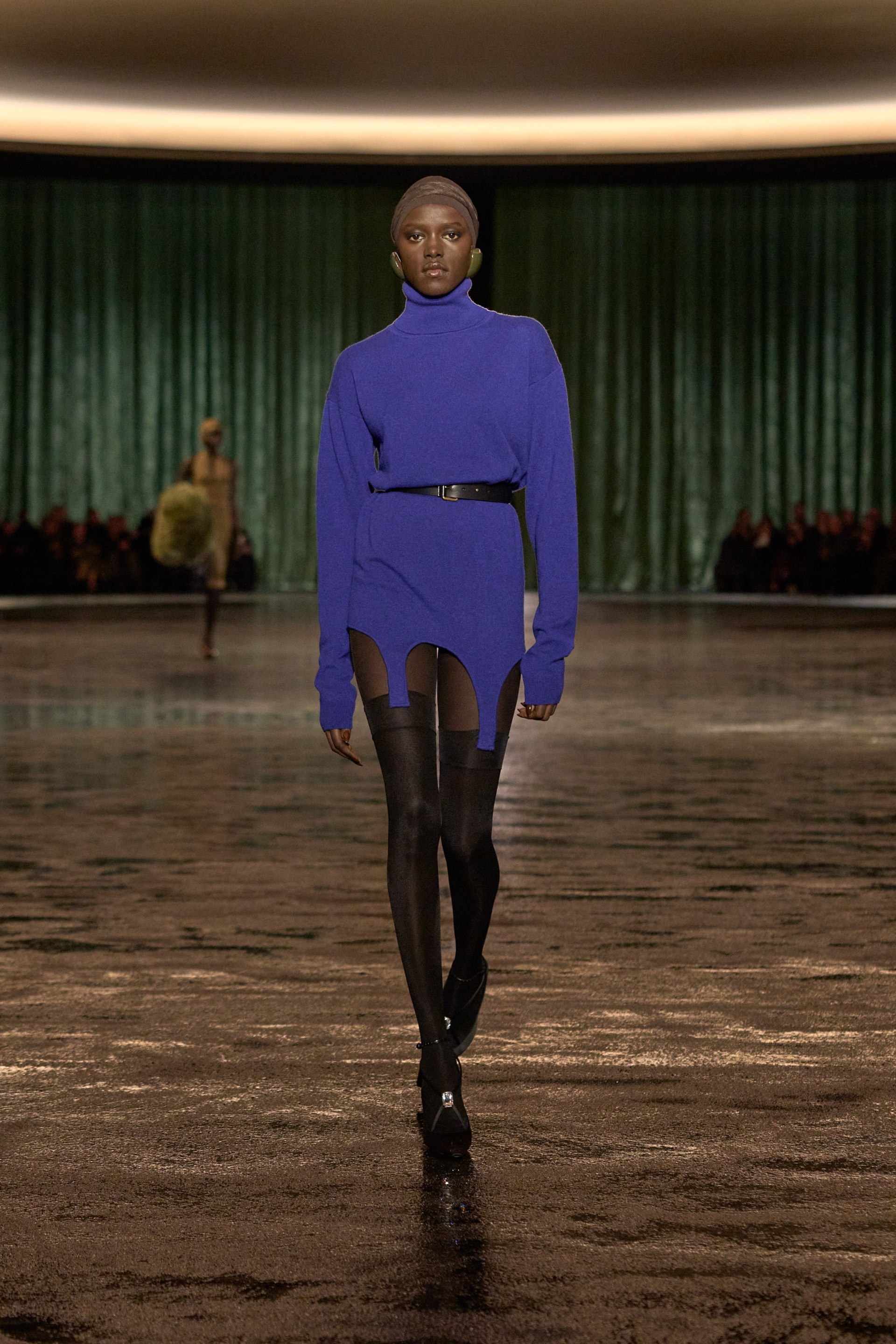 Vaccarello, bu koleksiyonla “Kıyafet ve çıplaklık arasındaki ilişkiye bariz bir övgü” sunuyor. Koleksiyondaki parçalar, şeffaflığı yeniden okuyarak, giysi ile cilt arasındaki mesafeyi en aza indiren ve kumaşı adeta buğu gibi vücudu saracak şekilde tasarlanmıştır. Yumuşak kahverengiler, yeşil, mavi ve siyah gibi renklerle zenginleştirilen koleksiyon, suni kürk şallar, keskin biçimli baş örtüleri, krep jorjet takımlar ve akışkan deri ceketlerle birlikte, dokunsal bir zenginlik sunuyor.