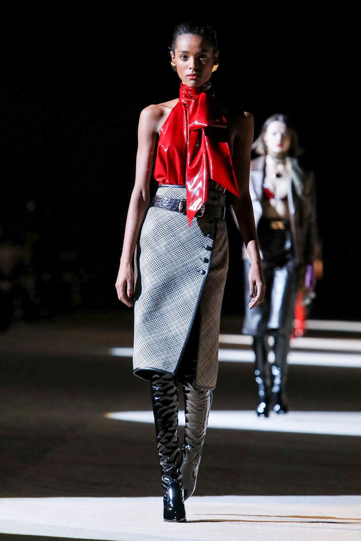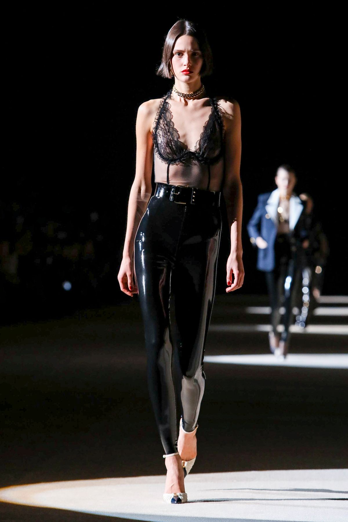 Paris Moda Haftası kapsamında gerçekleşen Saint Laurent Sonbahar / Kış 2020 defilesinin çarpıcı detaylarına göz atmaya ne dersiniz? Siyah, kırmızı, yeşil, mor, sarı ve mavi tonlarında çeşitli siluetleri ön plana çıkarken, ancak pistte bir malzeme göze çarpıyordu: lateks. Tanıdık yüzlerden; Kaia Gerber ve Adut Akech podyumda yürüyen isimlerdendi.