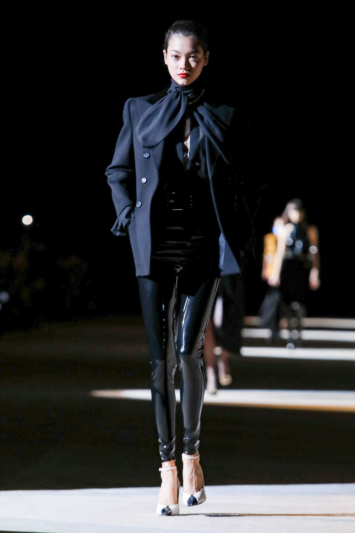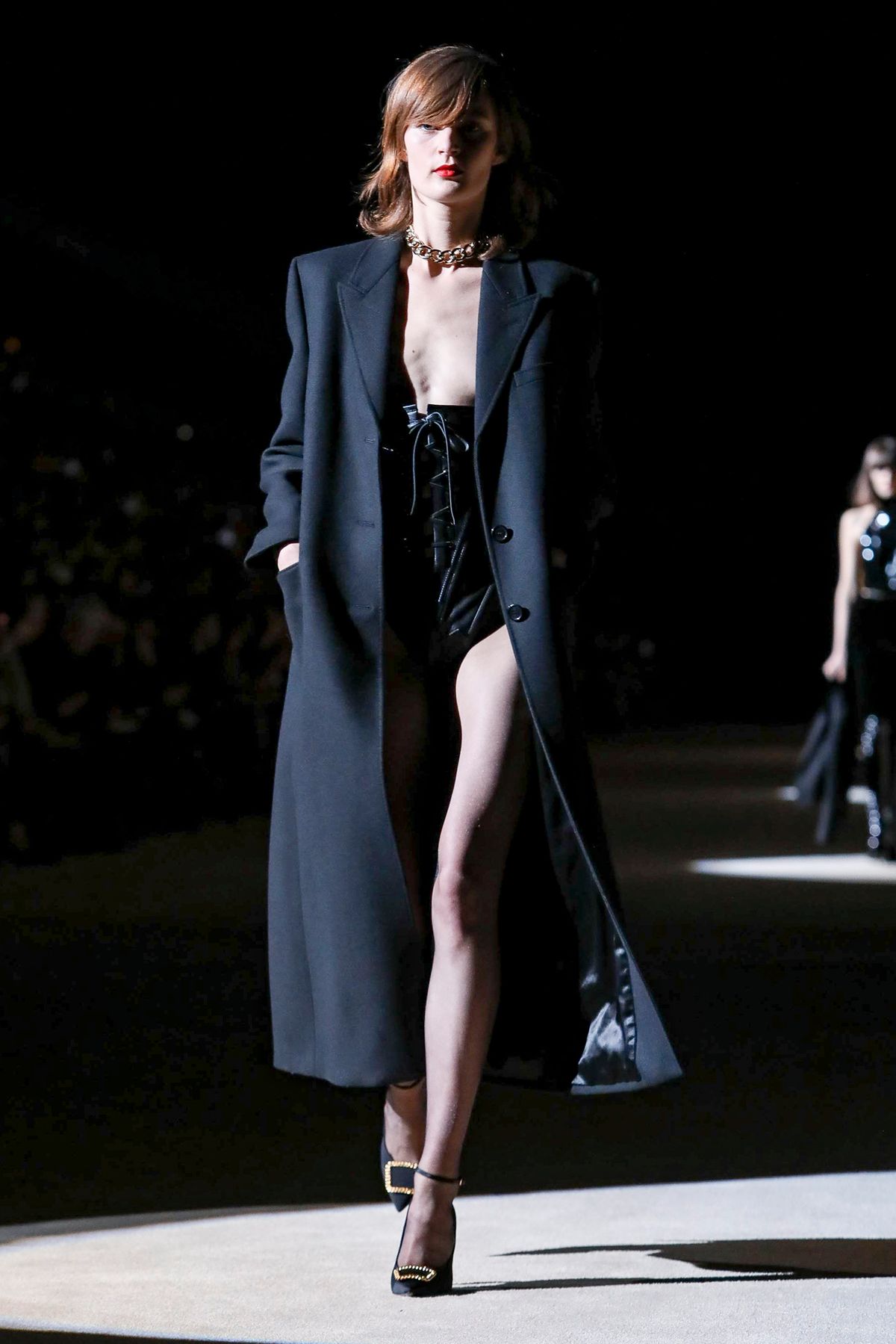 Saint Laurent Sonbahar / Kış 2020 defilesi Paris’in ikonik simgesi Eyfel Kulesi’nin hemen önünde sunuldu. Tüm konuklar tek bir açıdan podyuma bakarken, modeller kendi spot ışıklarında gizlenmiş bir şekilde yürüdüler.