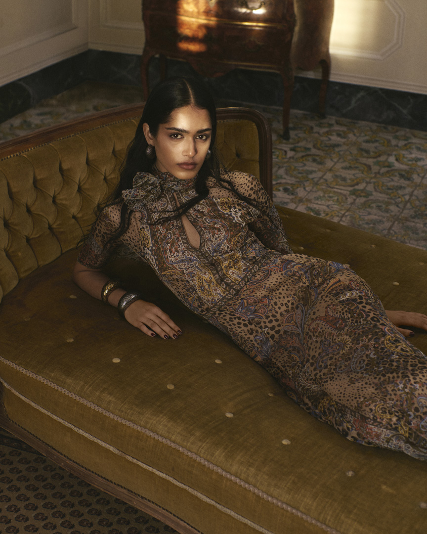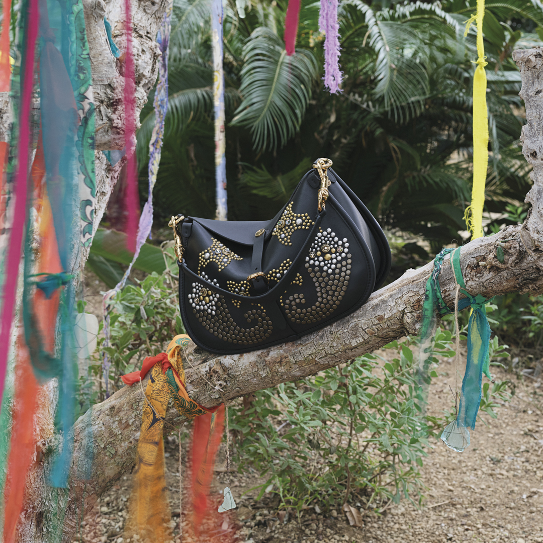 Aksesuarlar ise bu hikayenin organik bir uzantısı gibi sahneleniyor. Bitkilerle iç içe yerleşen çantalar ve mücevherler, koleksiyonun göçebe ve dönüşken ruhunu pekiştirirken; süslemeli sera atmosferi kampanyaya masalsı bir derinlik katıyor. Etro Flux, doğa ile sanat arasında kurduğu şiirsel dengeyle sezonun en güçlü görsel anlatılarından biri olarak öne çıkıyor.
