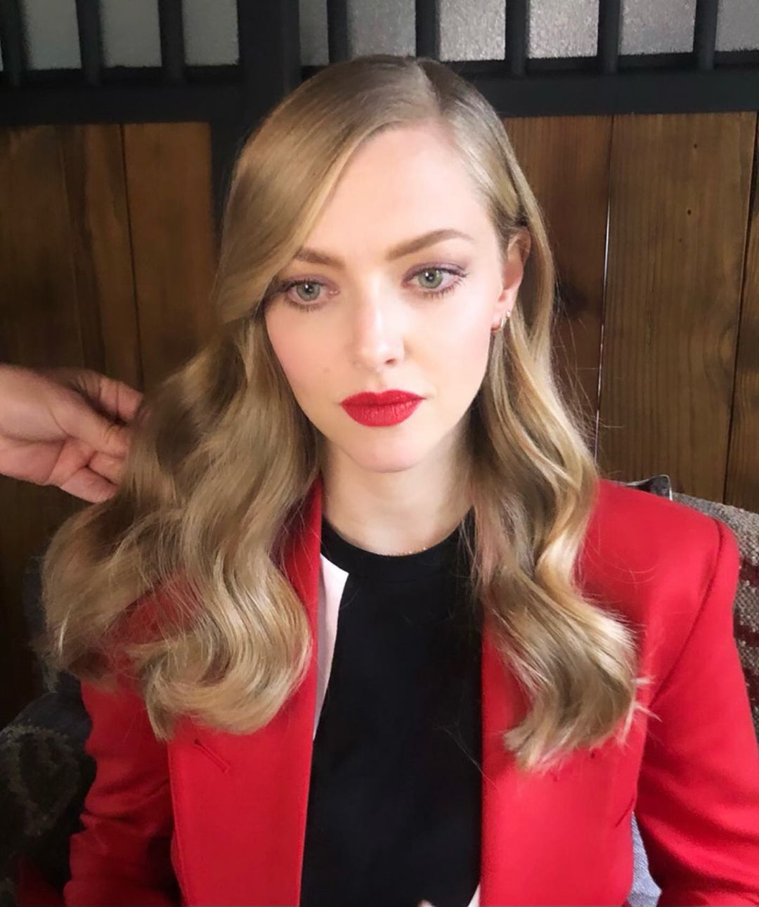 Amanda Seyfried bu kırmızı makyaj görünümünde tercihini mat rujdan yana kullanıyor. İri badem gözlerini ise mor ve kahverengi karıştırılarak dumanlı bir göz makyajıyla tamamlıyor. Maskara uygulamasının ise alt kirpikleri belirginleştirmeye odaklı olduğunu söyleyebiliriz. Yanaklardaki hafif pembe allıkla ten de renklendiriliyor.