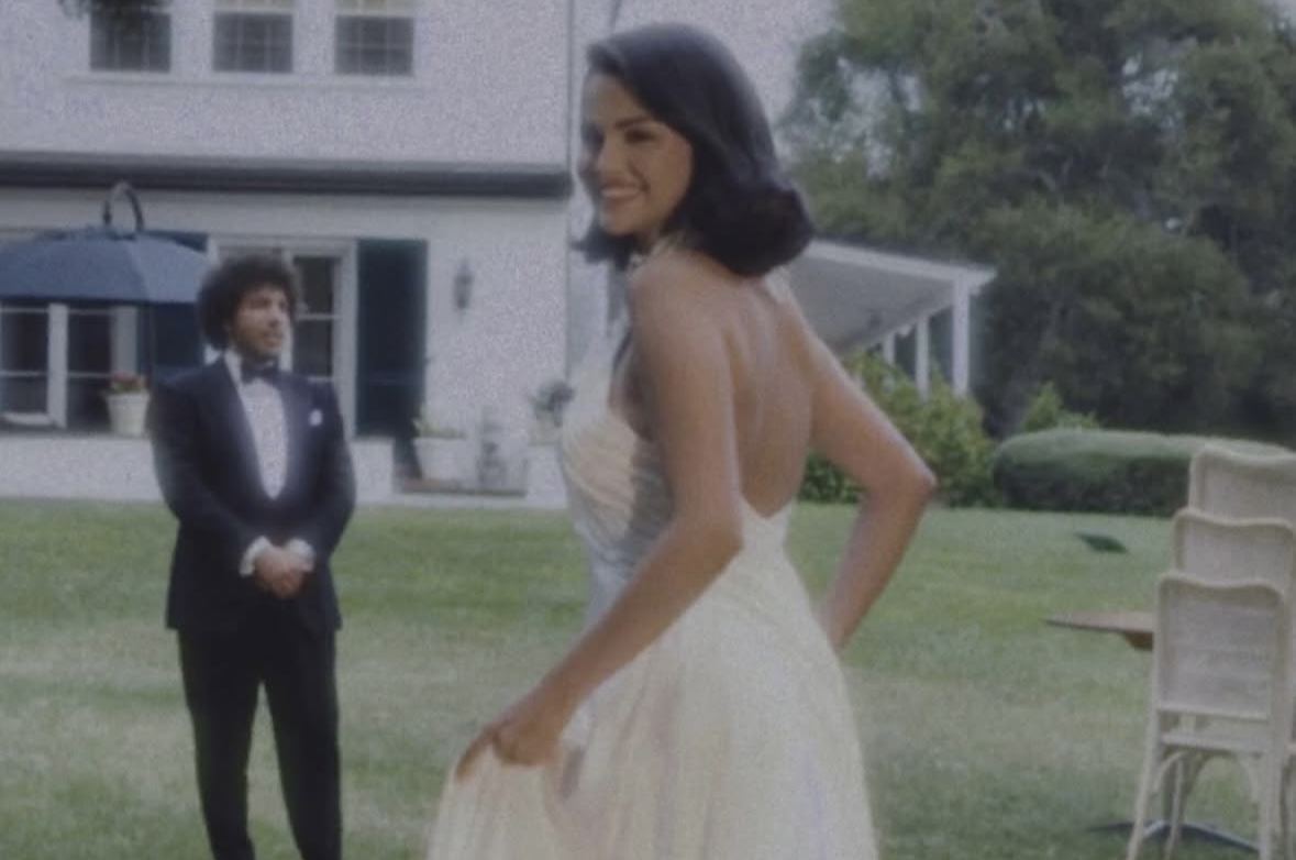 Selena Gomez, özel dikim bir Ralph Lauren gelinlik giydi. Çiçek işlemeli halter yaka tasarım, zarif sırt açıklığı ve drapeli siluetiyle modern ve zamansız bir şıklık sundu. Takı tercihini ise Tiffany & Co. pırlanta küpelerden yana kullandı. Benny Blanco da Ralph Lauren imzalı klasik bir smokin ile eşine uyum sağladı.